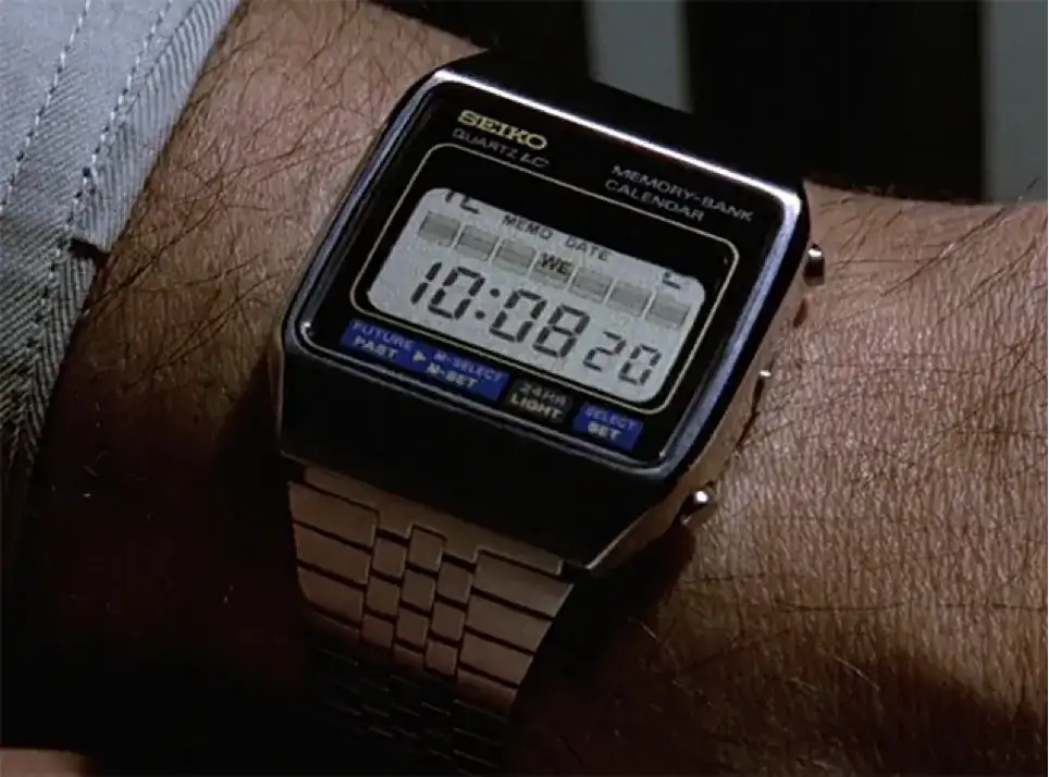 Seiko M354 5019 Memory-Bank Calendar. James Bond (Roger Moore) en la película de 1979: Moonraker.