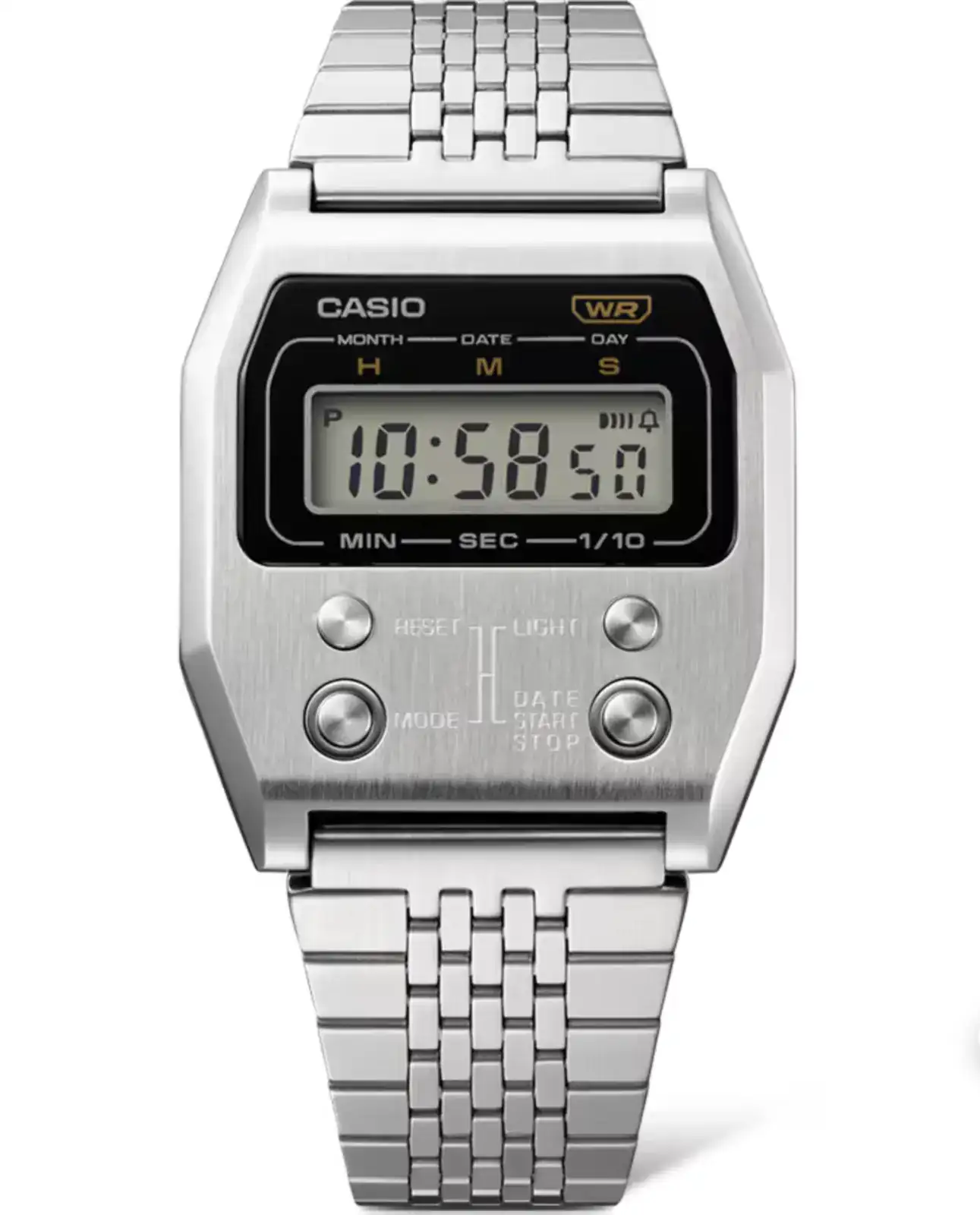 modelos A-1000, que no tienen, ni de lejos, ese aspecto “old school” y, al A-1100, original de 1976 y reeditado por Casio que sí conserva la esencia de la época, pero con una disposición de botones frontal en lugar de lateral. Los G-Shock de acero son modelos distintos a los que me refiero y con unos precios muy elevados.
