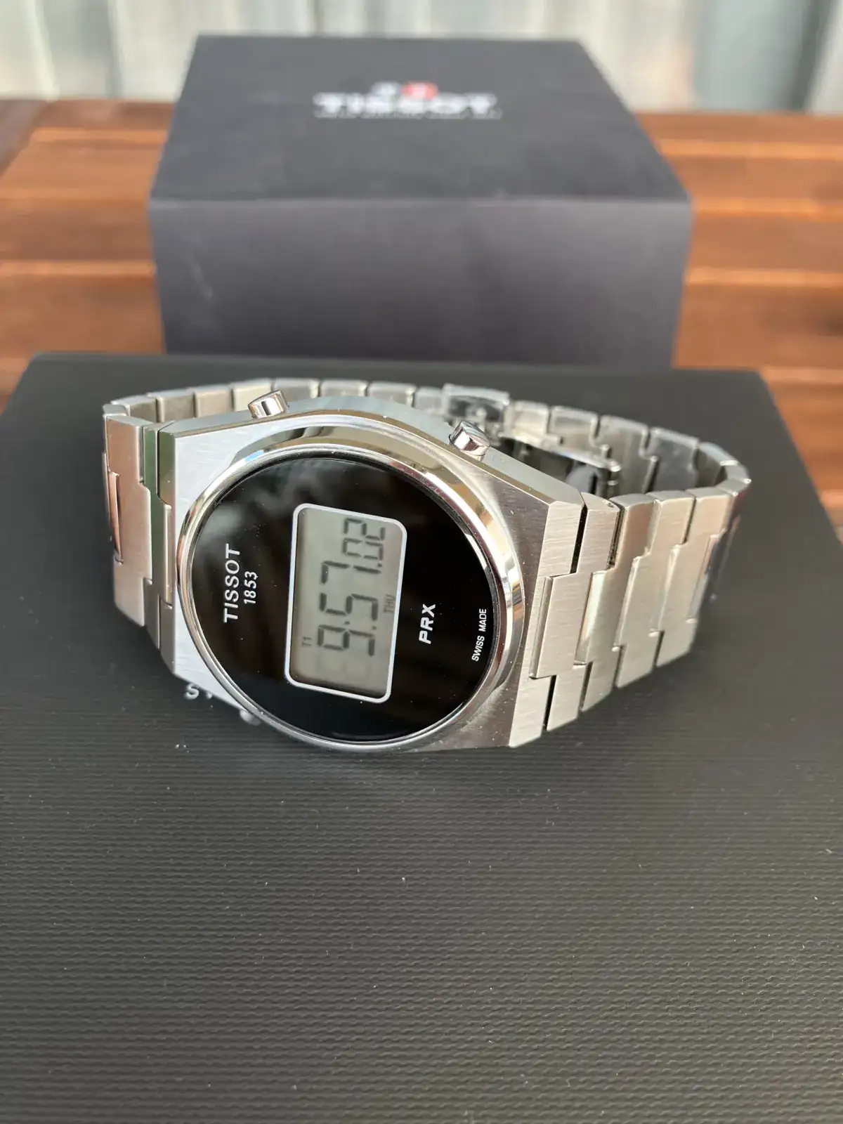 Recuerdo que fue en este Foro, naturalmente, cuando descubrí, gracias al hilo que abrió el compañero @Mderey, y a la presentación del compañero @rotciv en 2023, la reedición del espíritu setentero de los relojes digitales de acero de la mano de los suizos con el Tissot PRX digital. Una combinación entre el diseño del PRX y los Tissot digitales de cuarzo lanzados en 1977, con calibre 4012.