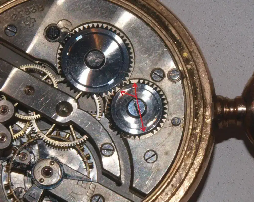 Es la rueda de corona que recibe la carga de la tija y engrana con la rueda del muelle , no es grave pues su unica misión es dar la cuerda y no creo que influya salvo un sonido desagradable al dar cuerda.