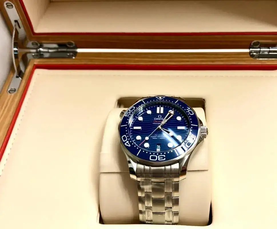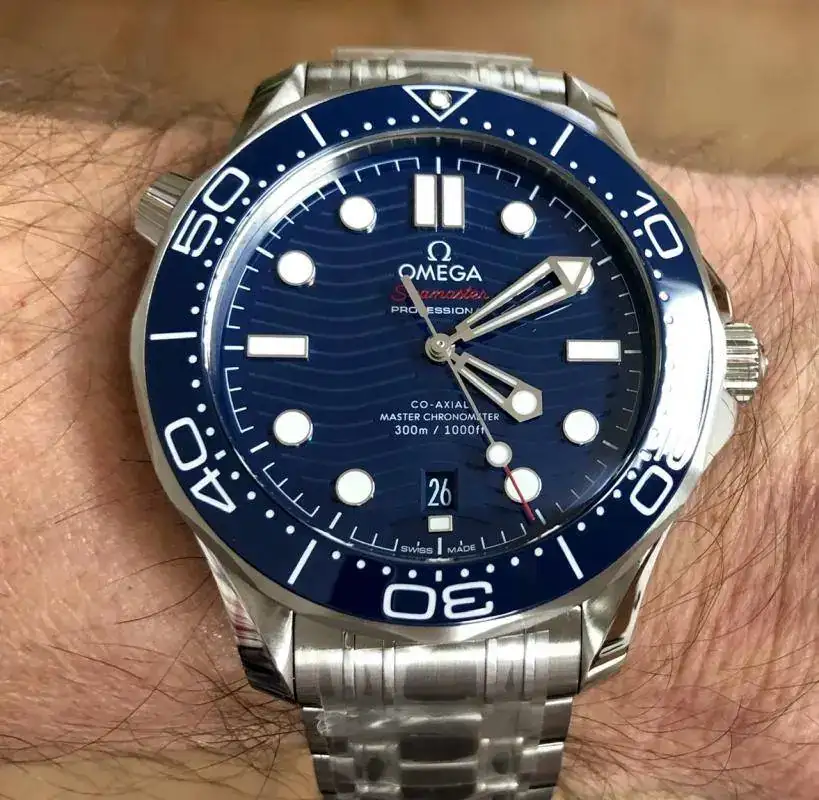 No puedo estar más feliz. Hoy lo he recibido y después de meditarlo durante mucho tiempo tenía claro el color, modelo, etc, así que me lancé a comprarlo y no darle más vueltas. Nunca me lo había probado pero si me llamaba la atención en los escaparates, y cuando recibí el paquete (que por cierto pesaba bastante) el corazón acelerado, las manos temblorosas y mi mujer sin saberlo (si se entera de lo que era y del precio ��). Cuando lo tuve en la mano me impresionó, el tacto, el brillo, el color cambiante, en fin. Del reloj poco se puede decir que no sepáis y además las referencias y opiniones de compañeros que también lo tienen eran inmejorables, a casi nadie le ha defraudado. Además es mi primer Omega.