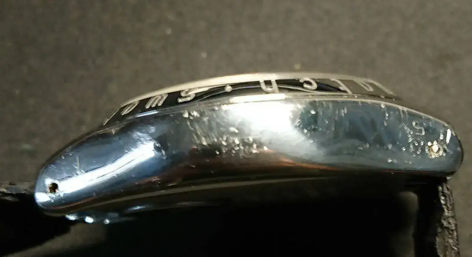 Lo siguiente fue proteger el cristal y el bisel y cepillar la caja. He de decir que para dejarlo "cómo nuevo" lo suyo era pulirlo, y esa fue mi primera opción, pero queda demasiado brillante para mi gusto. A continuación un antes y un después de la caja: