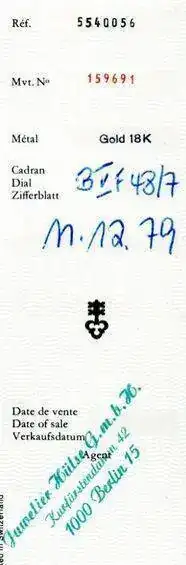 Tambien existen los papeles de entrega al cliente, de un joyero en Berlin, Kurfürstendamm, primera direcion de la ciudad, del 1979.