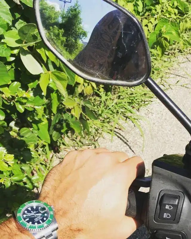 Lo primero que quiero dejar claro, es que como fotógrafo tengo poco arte. No obstante, adjunto foto de mi querido Rolex Hulk en Nusa Lembongan dándome un bañito. Como no se aprecia muy bien, pongo otra foto del mismo viaje en Bali camino de la playa a hacer surf. En esta segunda foto, se puede ver más claro el reloj con un entorno... ¿verde?