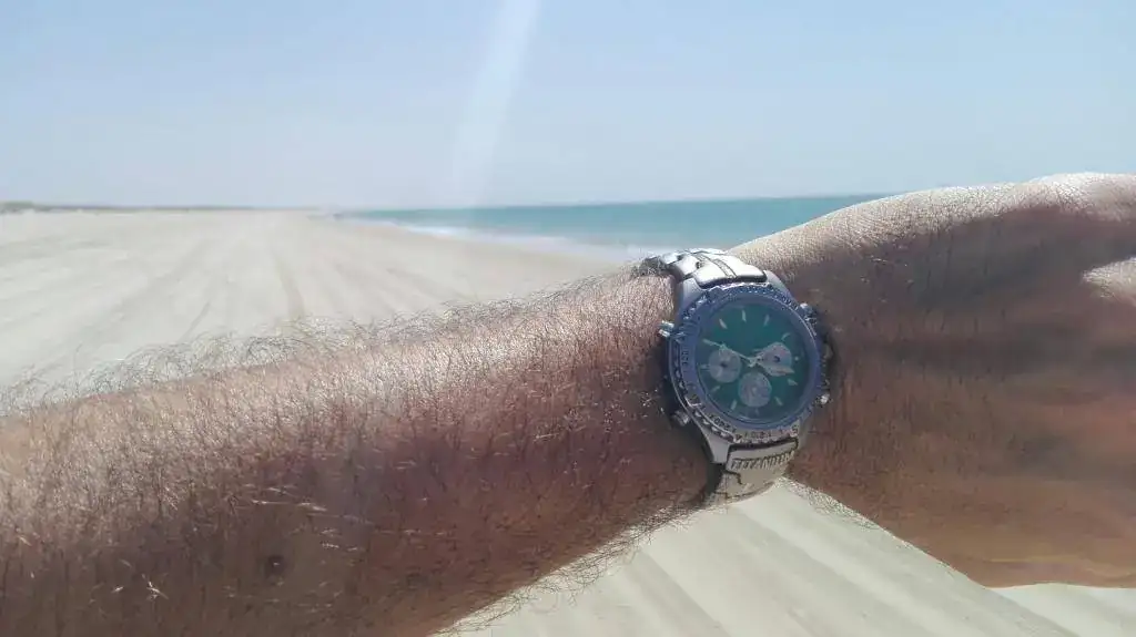 No es por el reloj ( mi viejo Adidas Titanium de batalla)... es que es la playa del Parque Nacional de Doñana y el entorno es la leche.
