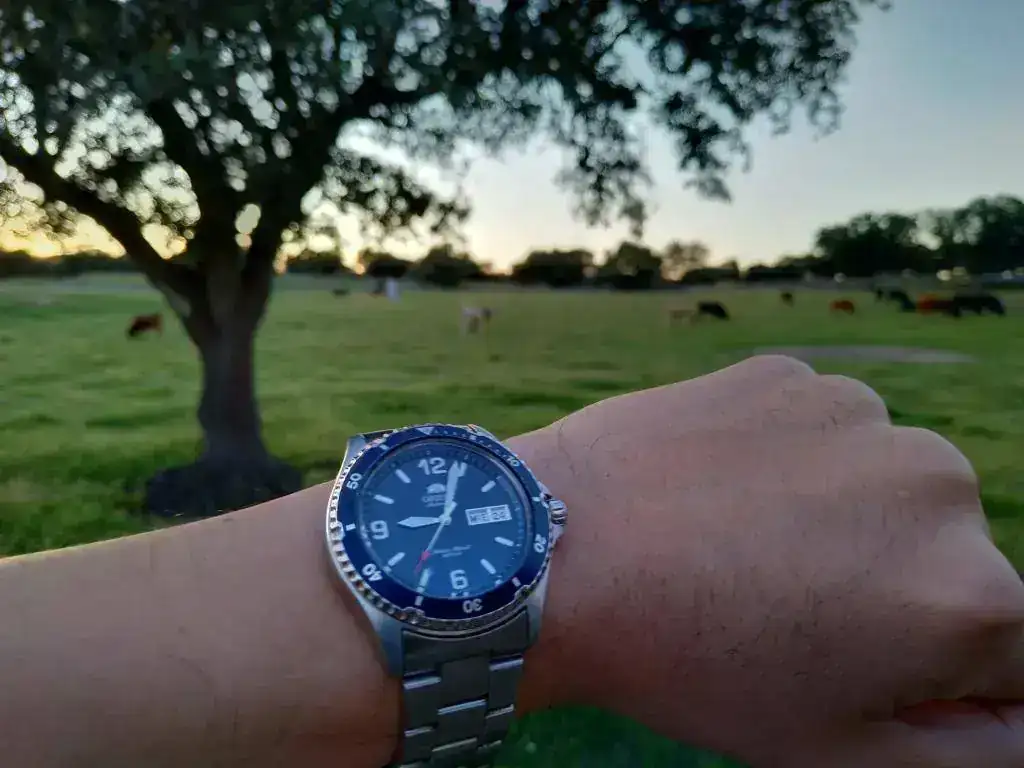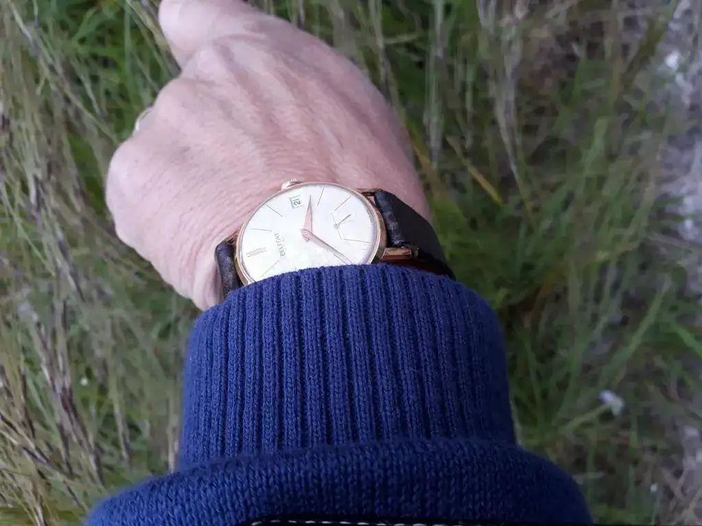 Paseando a mi perra rubia ( asi se llama ) con mi reloj Belfont a cuerda de los 60's. En Florencio Varela Argentina.