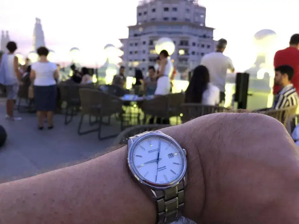 Plaza de Santa Ana, tomando unas cervezas en la Cervecería Alemana. El reloj es el nuevo Seiko Astron Edición Limitada por el Quincuagésimo Aniversario.