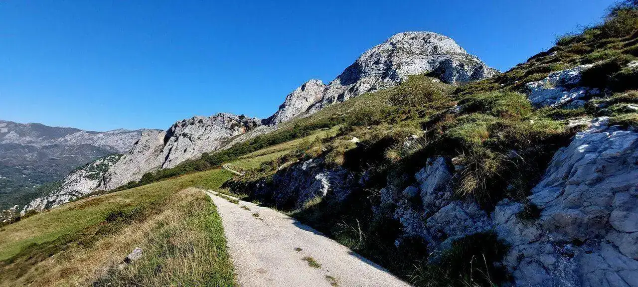 Por una pista que pasa por Pica Peñamellera 785m, pica que a partir de esta zona se vuelve muuuuy complicada de subir salvo escalada.... Aunque vista así parece insignificante