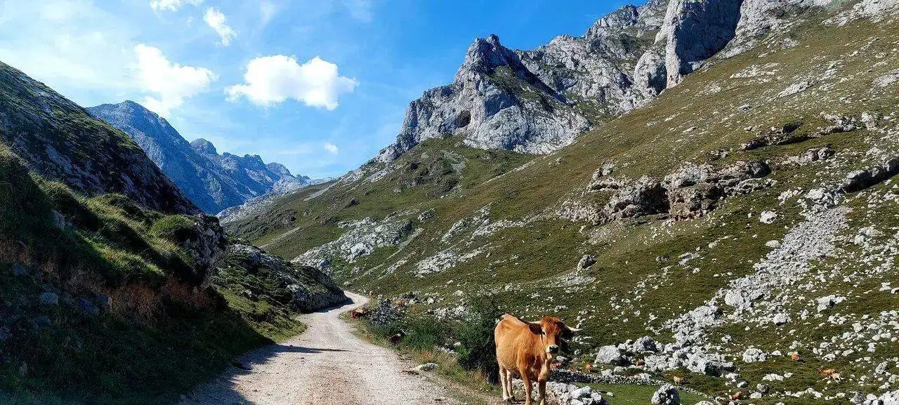 Seguimos por la Llomba del Toro, espectacular morrena, la mayor de la cordillera Cantábrica, 4km. El río Duje que discurre por la parte derecha, casi seco...