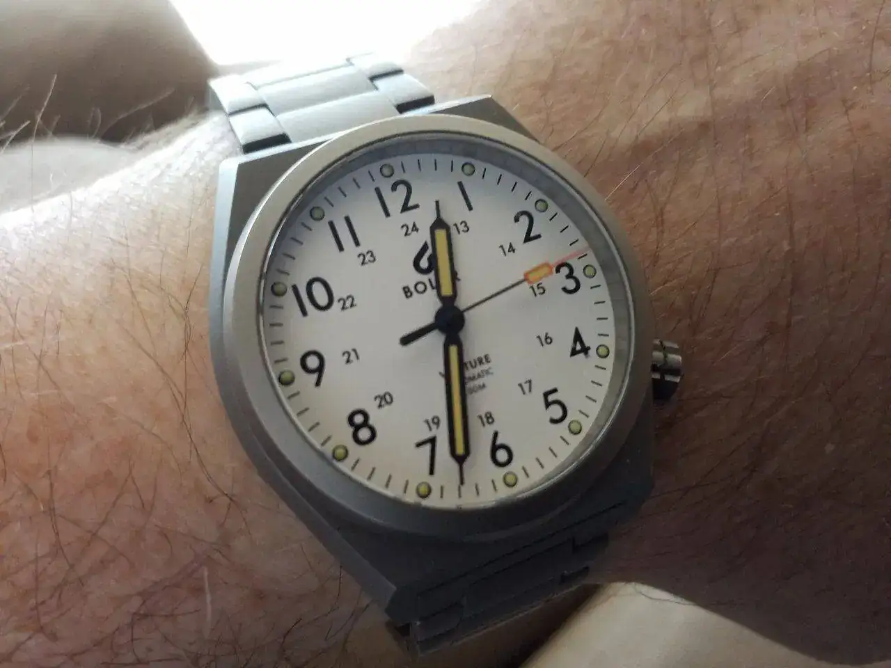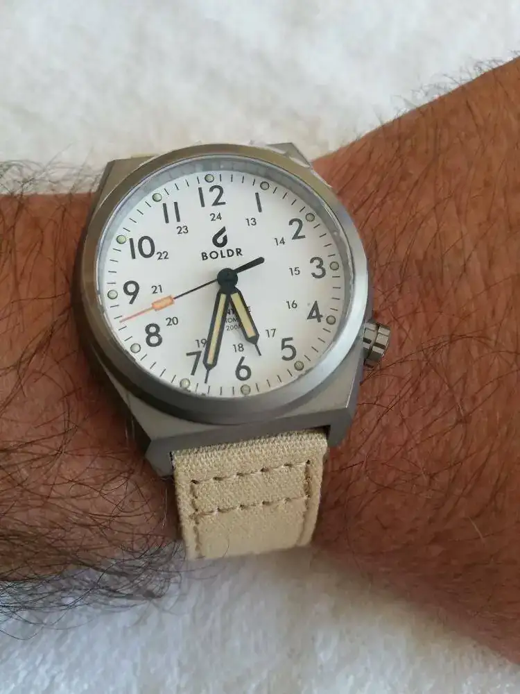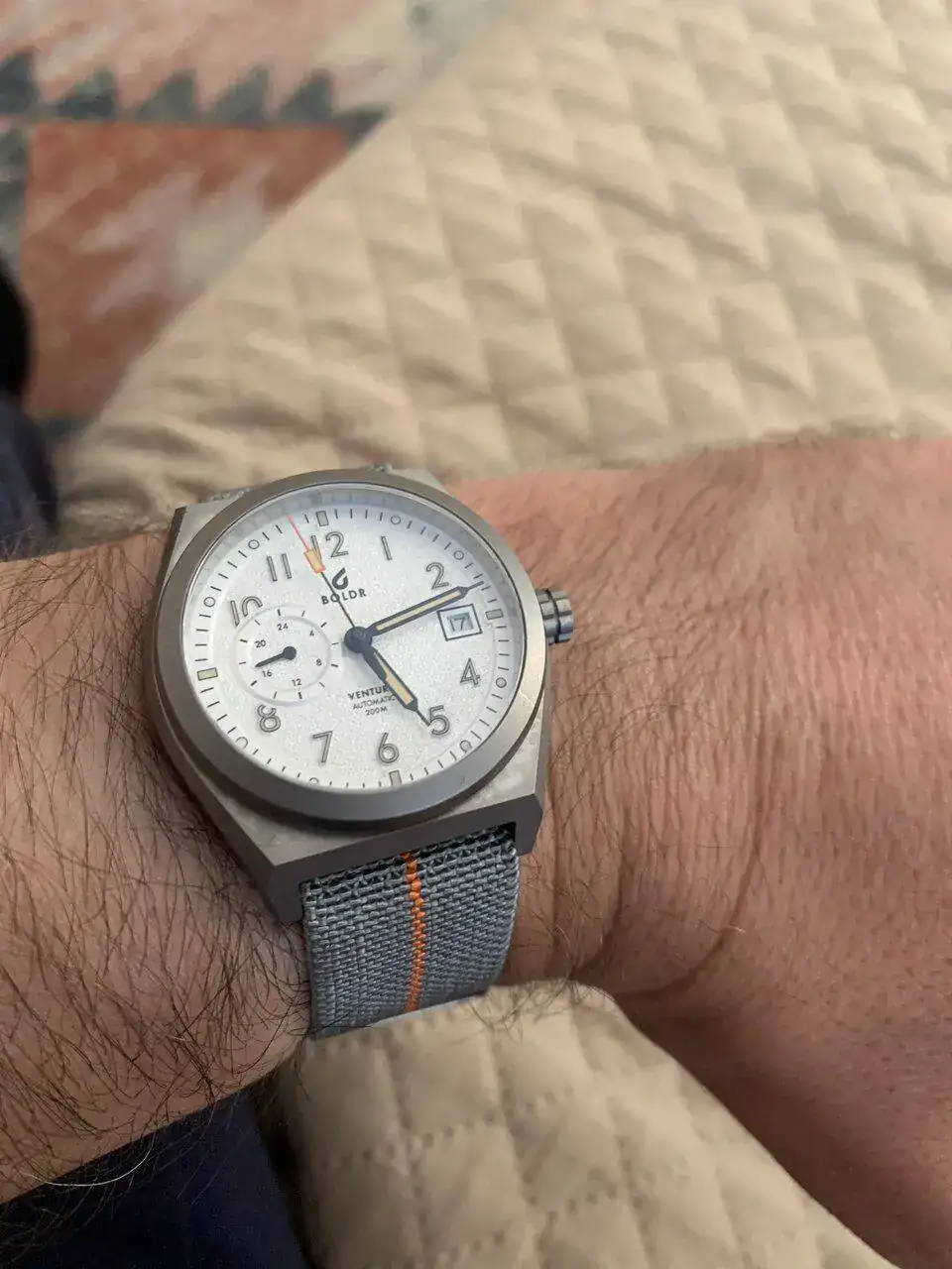 Muchas gracias.Es muy bonito... Personalmente, tengo 2 modelos, el primer Expedition, y el Venture en el que se basa éste. Hay que decir que son auténticos "strap Monster", le pongas lo que le pongas quedan bien. Por cierto, te recomiendo el brazalete de titanio que venden en su página web. Ligero, al ser de titanio, con eslabones sólidos y endlink macizos... Una pasada, en mi opinión.