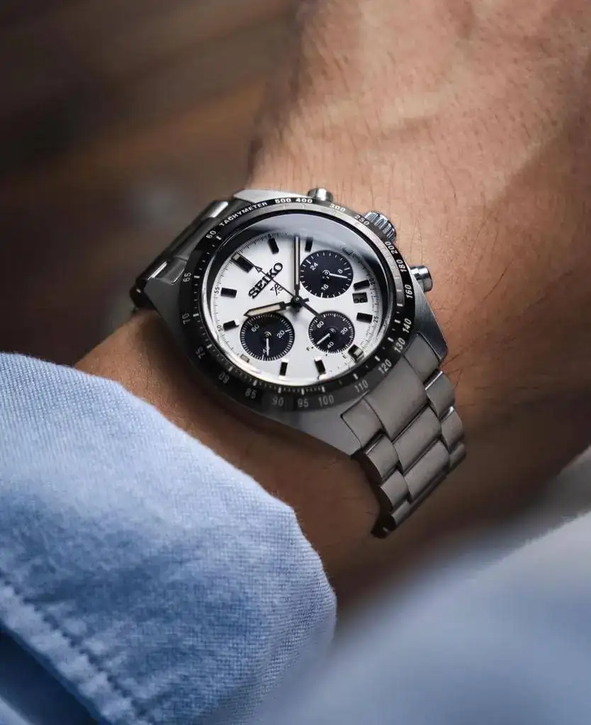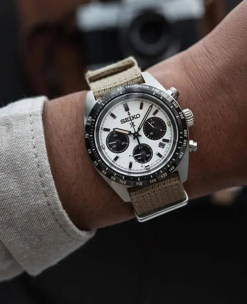 Viendo que ya tienes relojes con esa estética, cambio de opinión y te propongo el Seiko Speedtimer. Es un crono precioso, al que incluso le puedes poner una nato o correa de piel en algún momento: