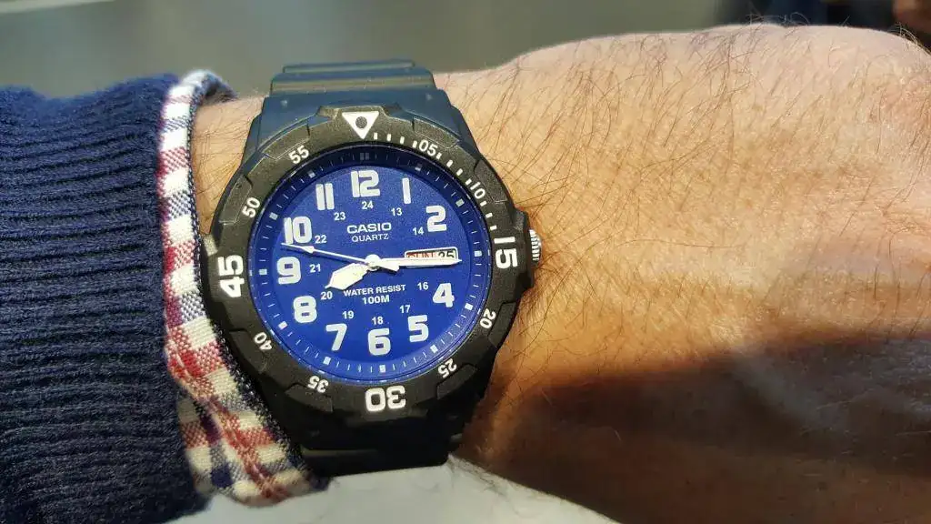 Esta tarde, dando una vuelta, he entrado en una tienda casio (una marca que asocio a digitales duros) y he visto este reloj, y otro de tonos azules con toques en amarillos, que me han gustado bastante.