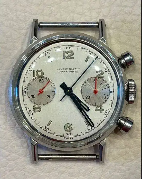 Ulysse Nardin vintage chronograph watch featured in steel. 35mm FB Patent borgel case in perfect original condition. More info onlinevintagetimes.nl