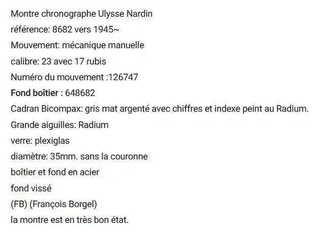 This Ulysse Nardin Chronograph from the end 40's really deserves to be called RARE! It uses a steel cylinder waterproof FB (Francois Borgel) case like Patek Phillippe & Movado. Above all it is in...www.carsandwatches.com
