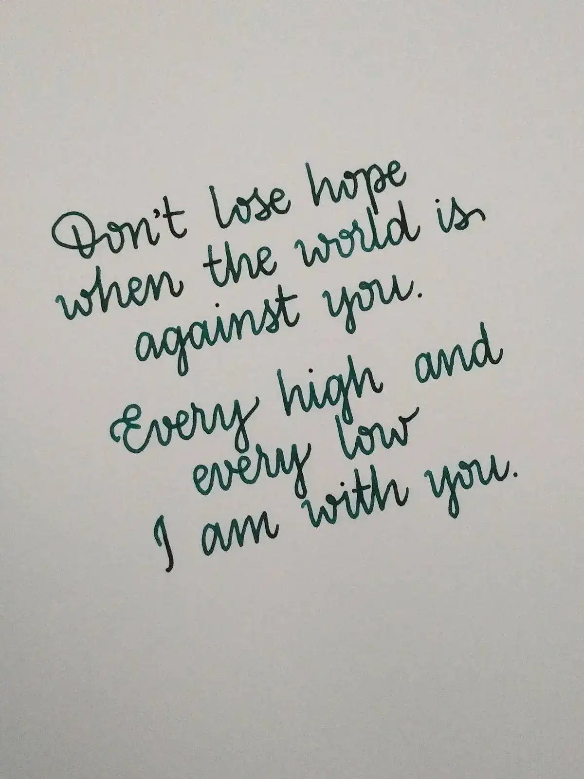 No pierdas la esperanza cuando el mundo esté en tu contra. En los momentos buenos y en los malos, estoy contigo.