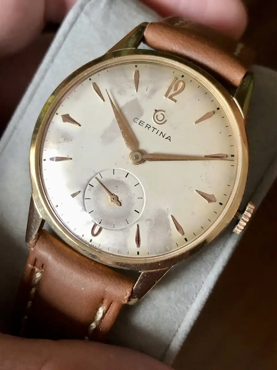 Mi padre falleció recientemente. Al ordenar y recoger sus cosas, mi madre encontró un Certina antiguo que ella ni recordaba, pero con las señales que tiene parece que sí lo usaba... ¡Hace 40 años o más! Seguramente en cuanto tuvo un reloj de cuarzo lo mandó al fondo de un cajón. Así que me lo he llevado yo como relojista de la familia.