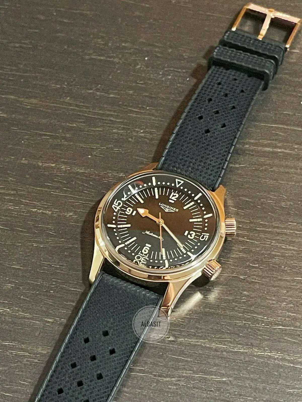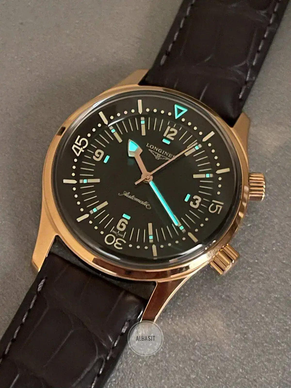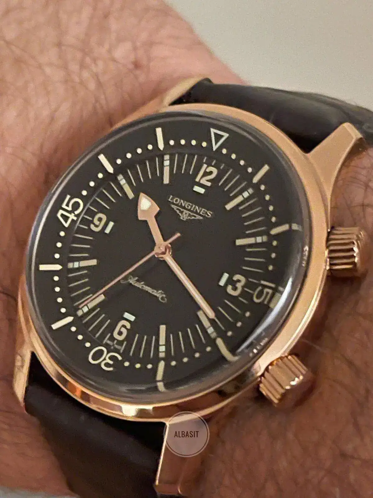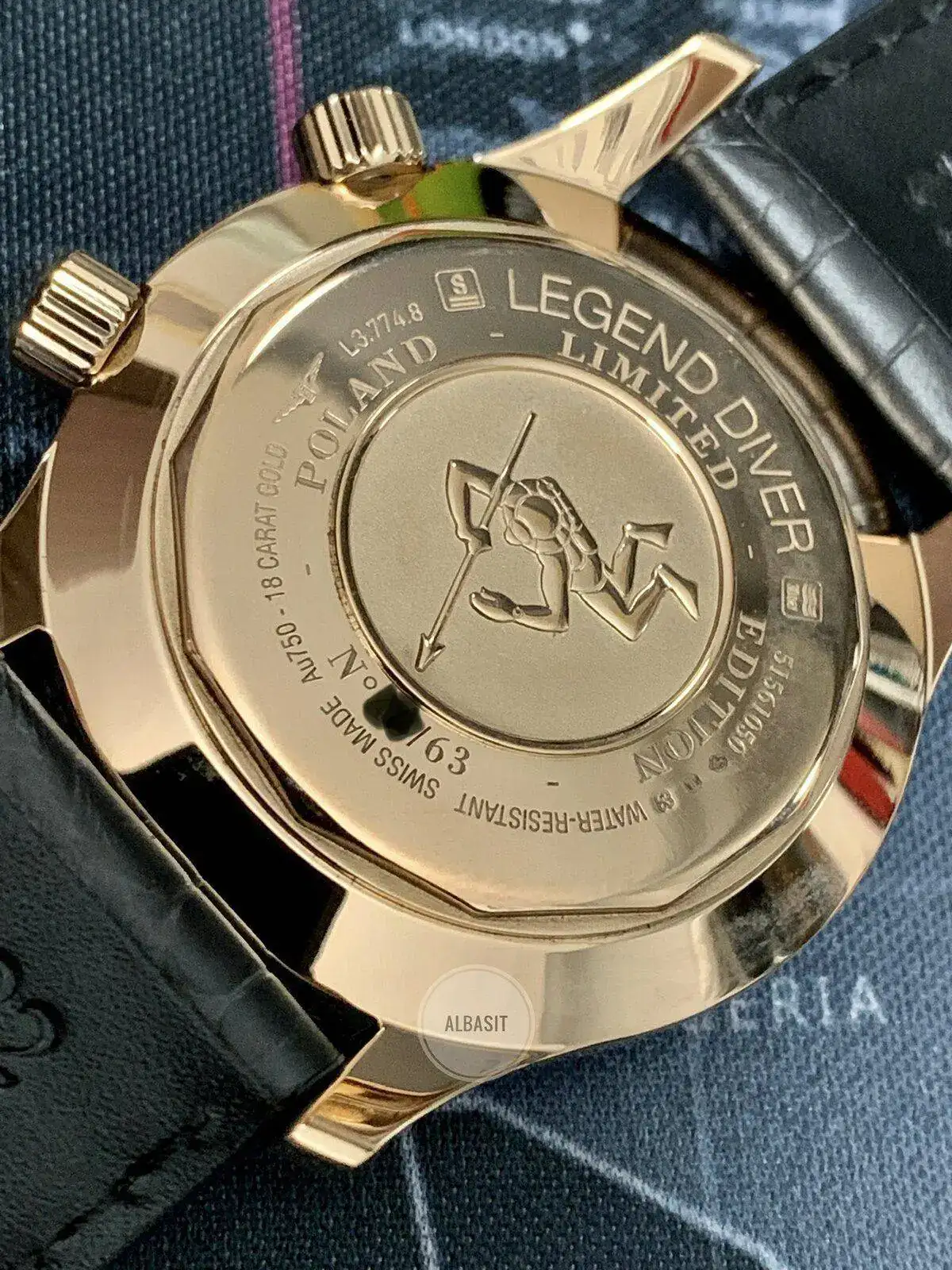 Detalle de la bonita trasera , con el buzo de Longines en oro rosa, comentaros que es una edición especial de 63 unidades , y como algunos os preguntaréis , son 63 , porque según me confirmaron desde Longines 1963 fue el año oficial de lanzamiento del Legend Diver , ( aunque en algunas páginas de internet , ponen otra fecha ) yo me fio en este caso de la marca ..