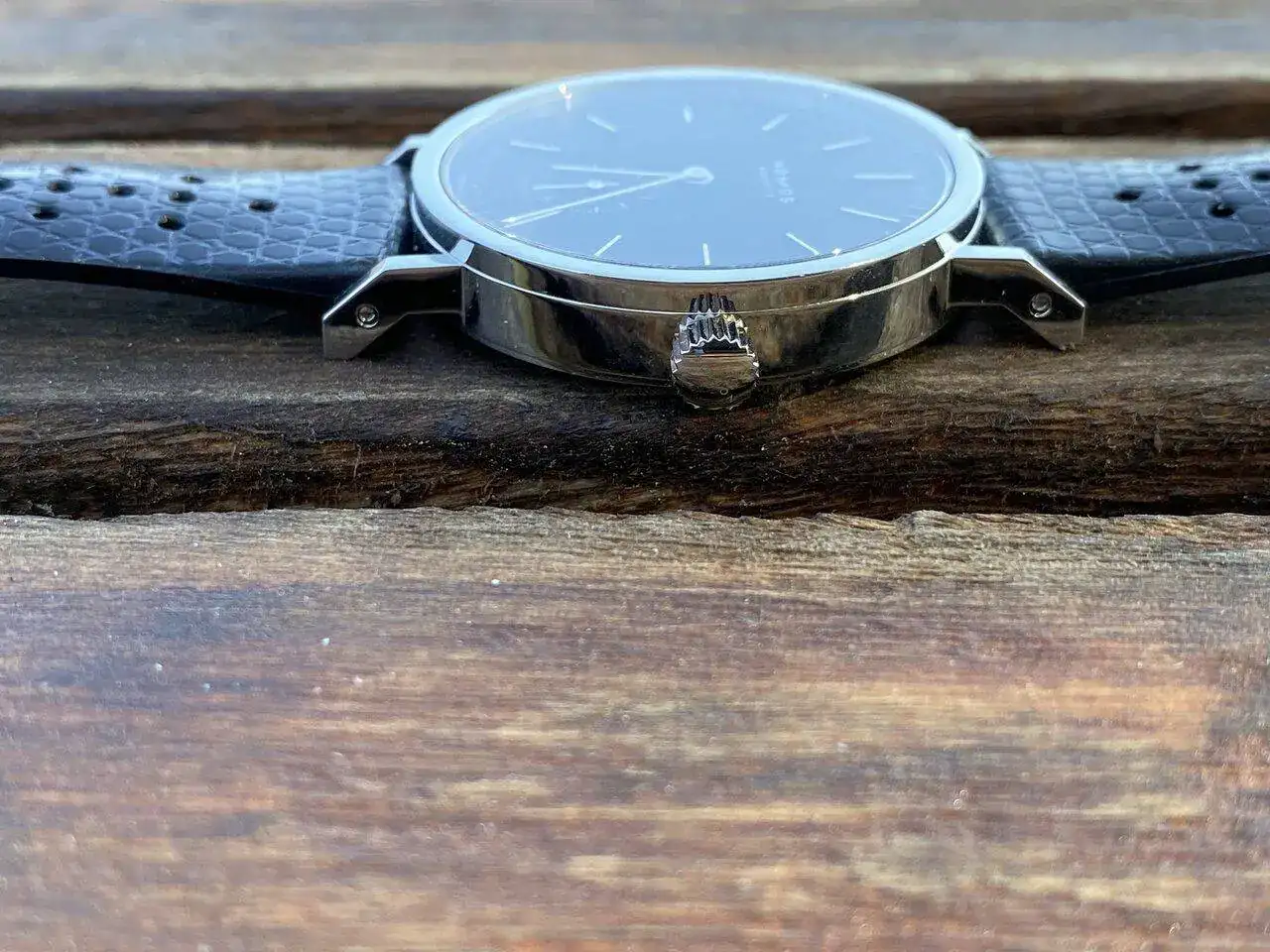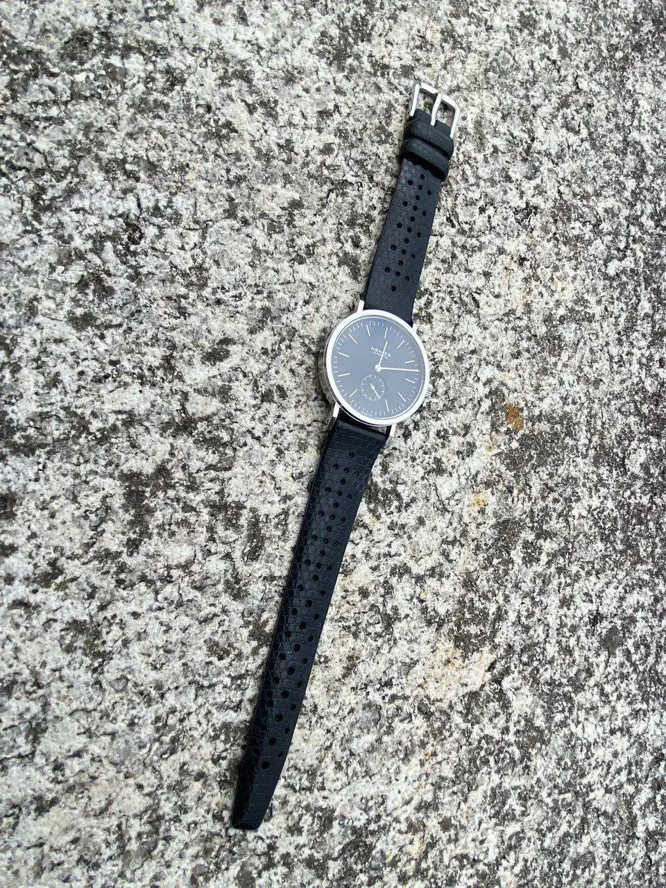 Algunas cosas que no tiene son inserto de bisel ni luminiscencia, pero no los echo de menos en un reloj que es también de vestir. La corona no es atornillada, cuestión que tampoco me preocupa aunque sé que hay personas para las que esta función es imprescindible en un reloj acuático -nunca he tenido problemas en mis relojes sin corona atornillada que he introducido en el agua, y tampoco he oído de nadie a quien haya ocurrido algo malo por esta ausencia. Por último, tampoco tiene tampoco brazalete, y aunque en principio soy partidario de ellos, he llegado a la conclusión de que puede ser una ventaja, porque así puedo cambiar de correa en función de las circunstancias, con la ilusión de casi estrenar reloj cada vez que cambio la correa.