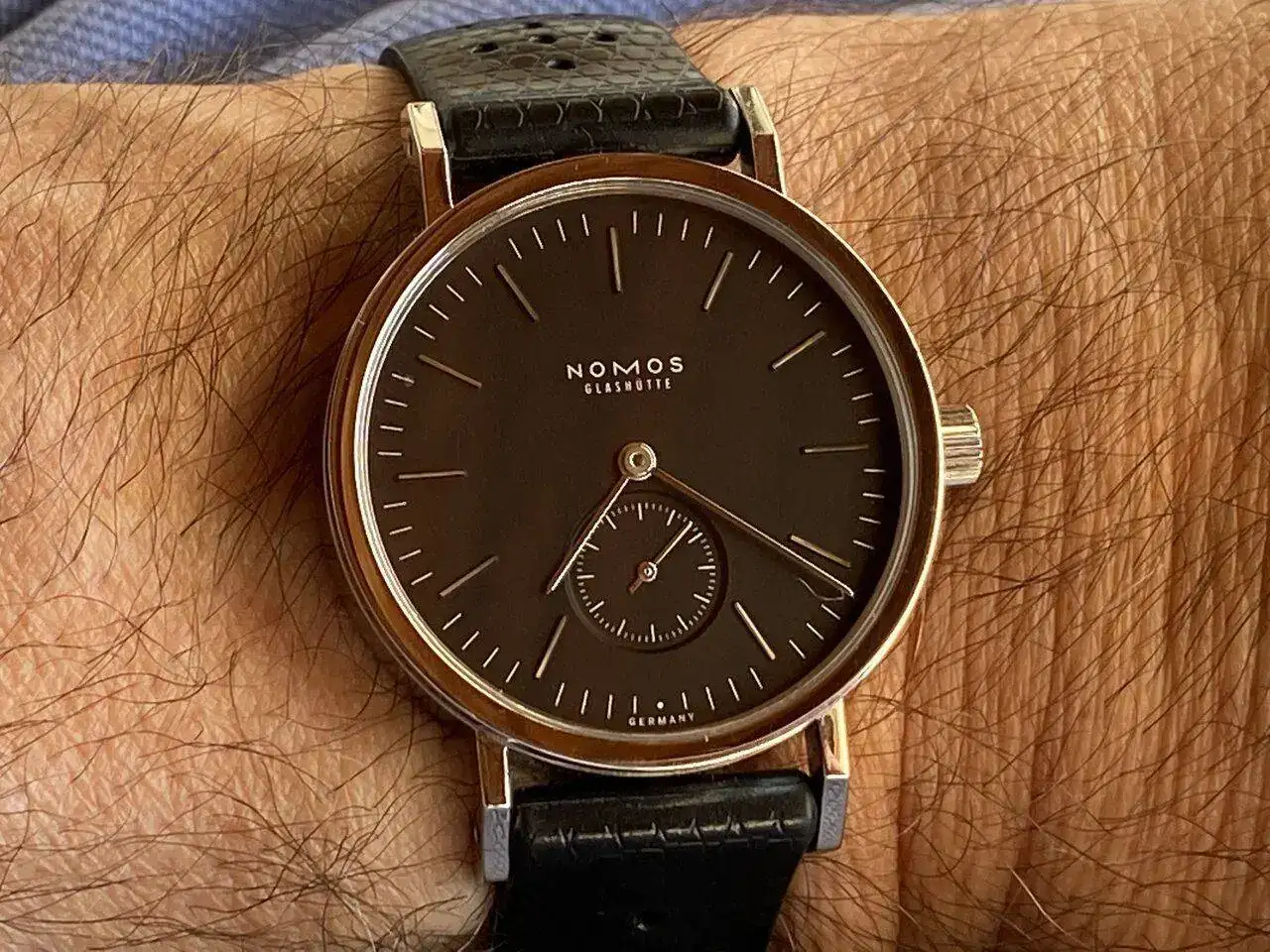 A la postre he decidido que el Nomos Tangente Sport Index, referencia 506, descatalogado ya, cumplía con todos los requisitos que pido a un reloj, y a un precio además bastante inferior a los mencionados. No dejo de mirarlo cuando lo llevo puesto y su visión me hace sonreír, en suma, me hace feliz, me proporciona toda la felicidades que puede proporcionarte un reloj, claro está…que es mucha, como sabemos los aficionados a estas máquinas del tiempo 😀😀😀.