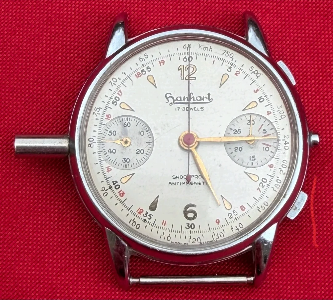 Aunque la esfera es de la marca Hanhart, estos dispositivos solían ser ensamblados por la empresa alemana Protona utilizando componentes de Hanhart entre finales de los años 50 y los 60.