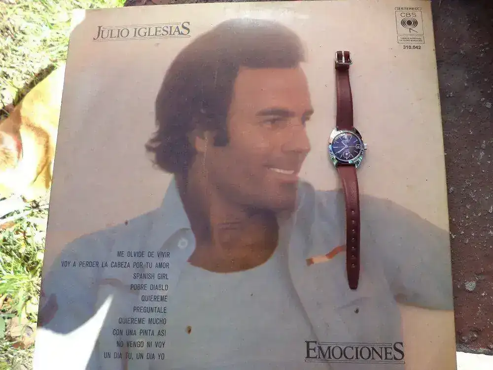 Disco larga duración del Gran Julio Iglesias " Emociones " de 1978..... y el reloj desconocidísimo es un Sadco Ancora a cuerda. Un conocido para un desconocido. saludos