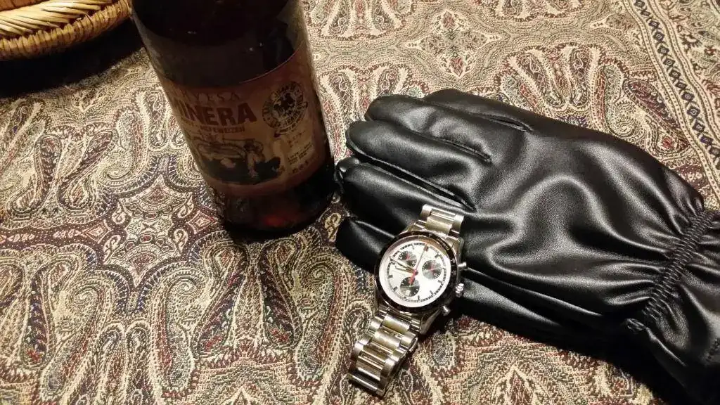 Un Bulova homenaje y una St. Bernardus Abt 12, cerveza belga de Abadía de Monjes Trapistas, altísima graduación (10% vol.) y color café oscuro. Muy buena, sin el exceso de dulzor de otras de este tipo. Seguro que algún soldado norteamericano en 1.945 al atravesar Bélgica con su Bulova o Hamilton en la muñeca se bebió algo en una abadía de monjes.