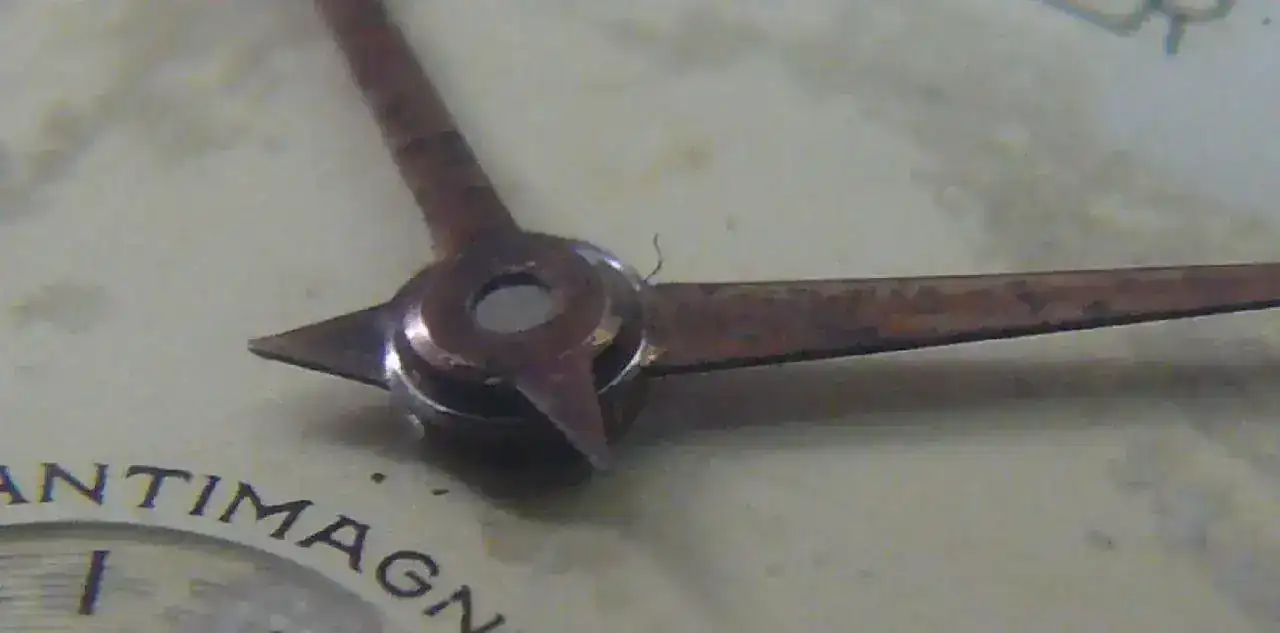 Me he dejado un pelo de algo pegado en la minutera, o en la horaria...