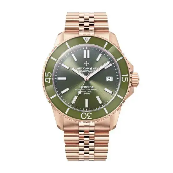A mi personalmente esta combinación me gusta mucho...Curioso el verde con ese brazalete de oro rosa. Una combinación arriesgada que no había visto hasta ahora pero que no queda mal en su conjunto.