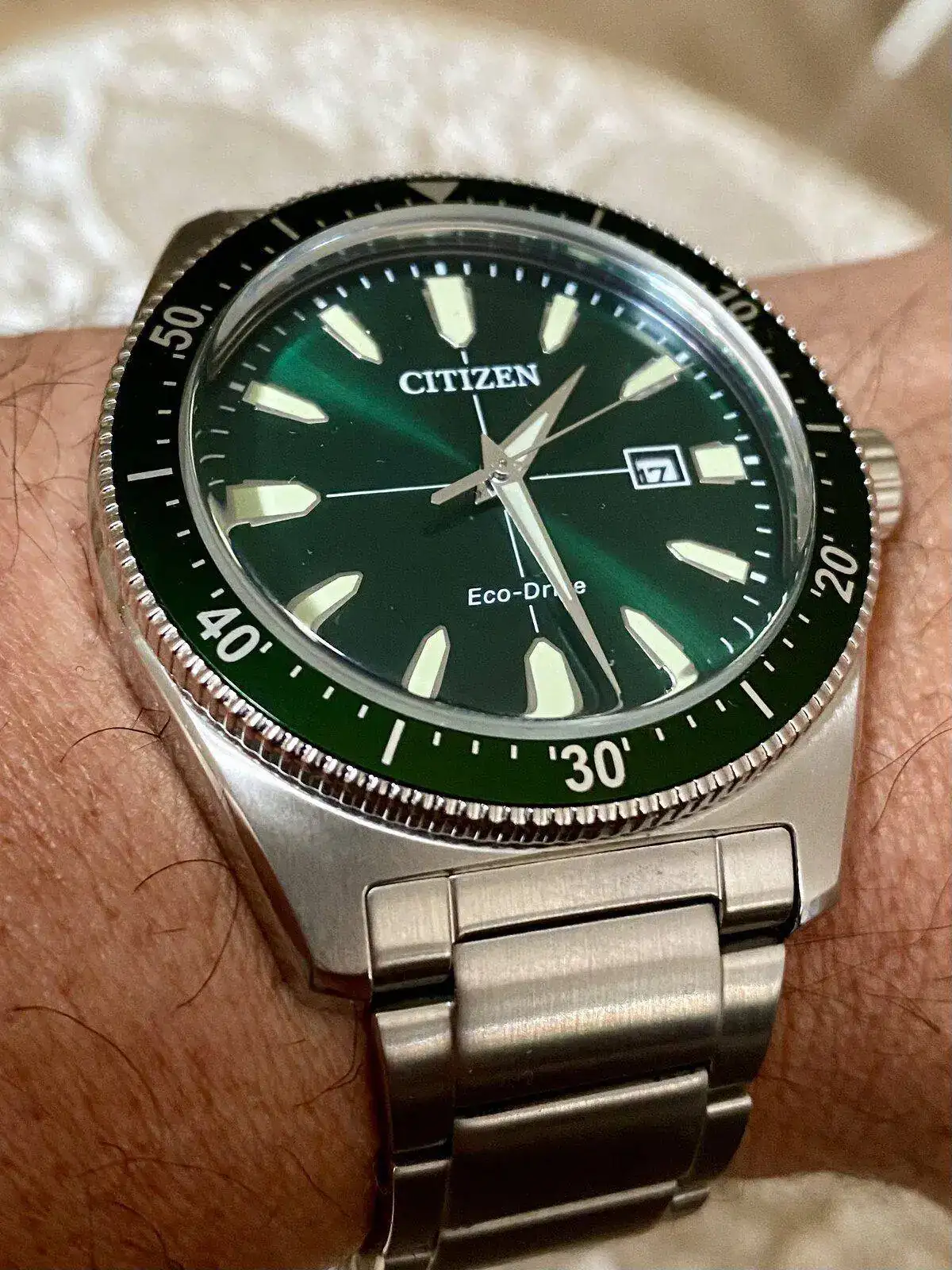 Pues me fijaré más. De momento sigo sin ver muchos.Tanto como los otros. La verdad es que me gusta bastante. Citizen ha acertado en el tono. Tuve algunos otros verdes y no me gustaban demasiado por ser pálidos o muy brillantes.