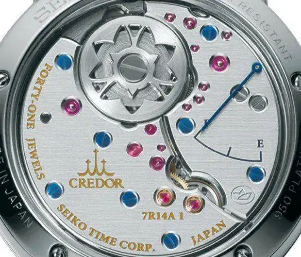 En un nivel superior de precio, el mismo concepto puede aplicarse al Seiko Credor Eichi II. Claramente un reloj de alto precio, en torno a los 60.000$, el Eichi aporta valor añadido en la decoración de su movimiento. Toda ella es realizada a mano y a un nivel que sólo puede encontrarse en piezas de categoría muy superior, de hecho podría argumentarse con total convicción que el Eichi destaca incluso por encima de piezas como el Voutilainen Vingt-8.
