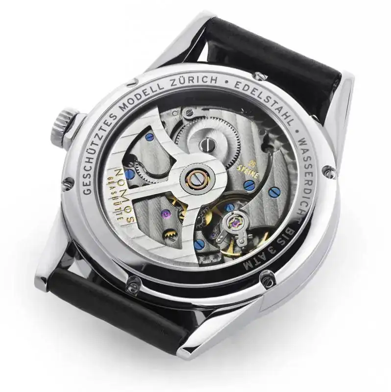 En el lado de los "asequibles" uno que destaca claramente es Nomos Glashutte.El relojero alemán se esfuerza en terminar sus movimientos aplicando una parte de su "finishing" a máquina y una parte a mano, dejándolos bellamente decorados.