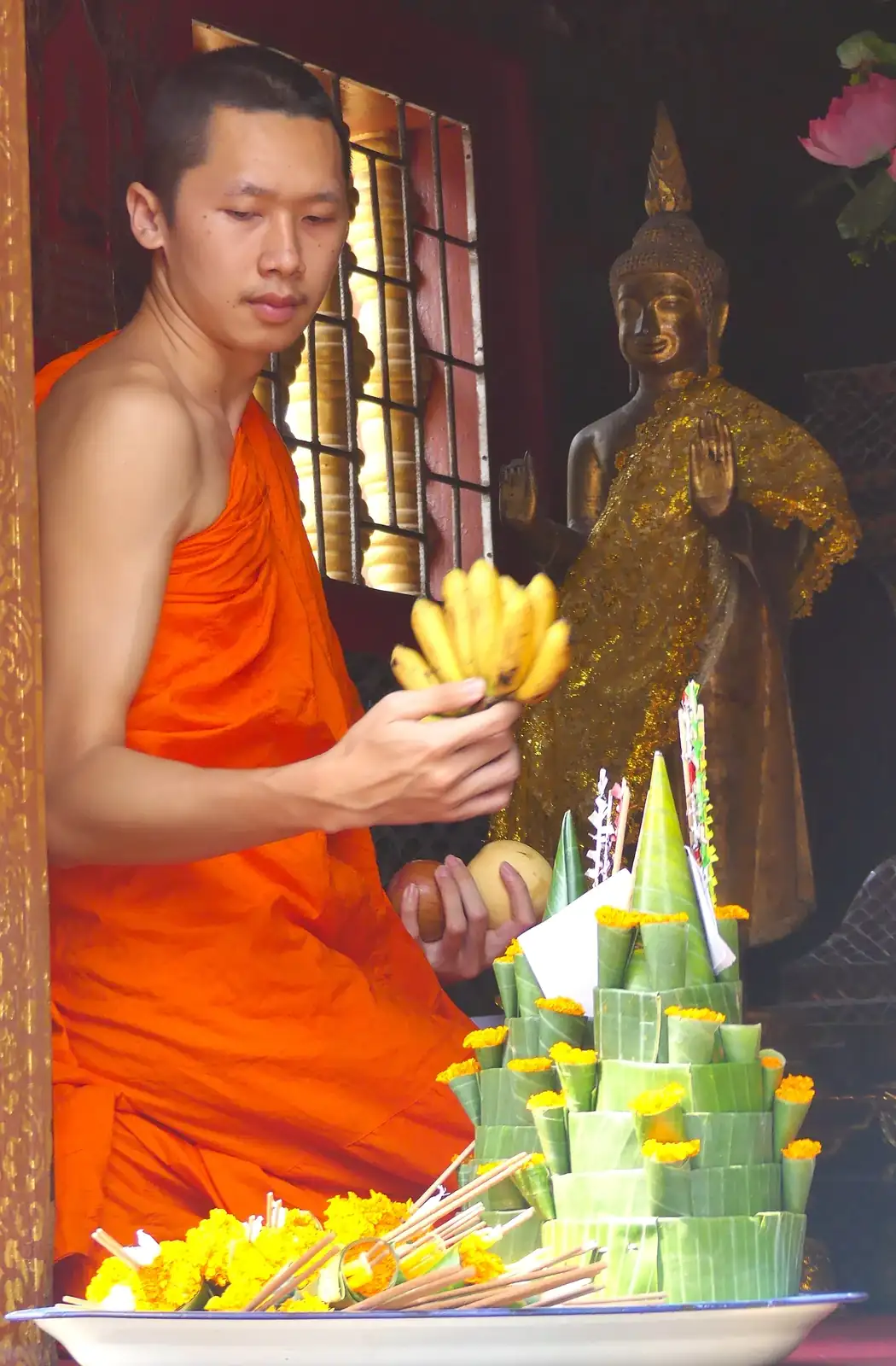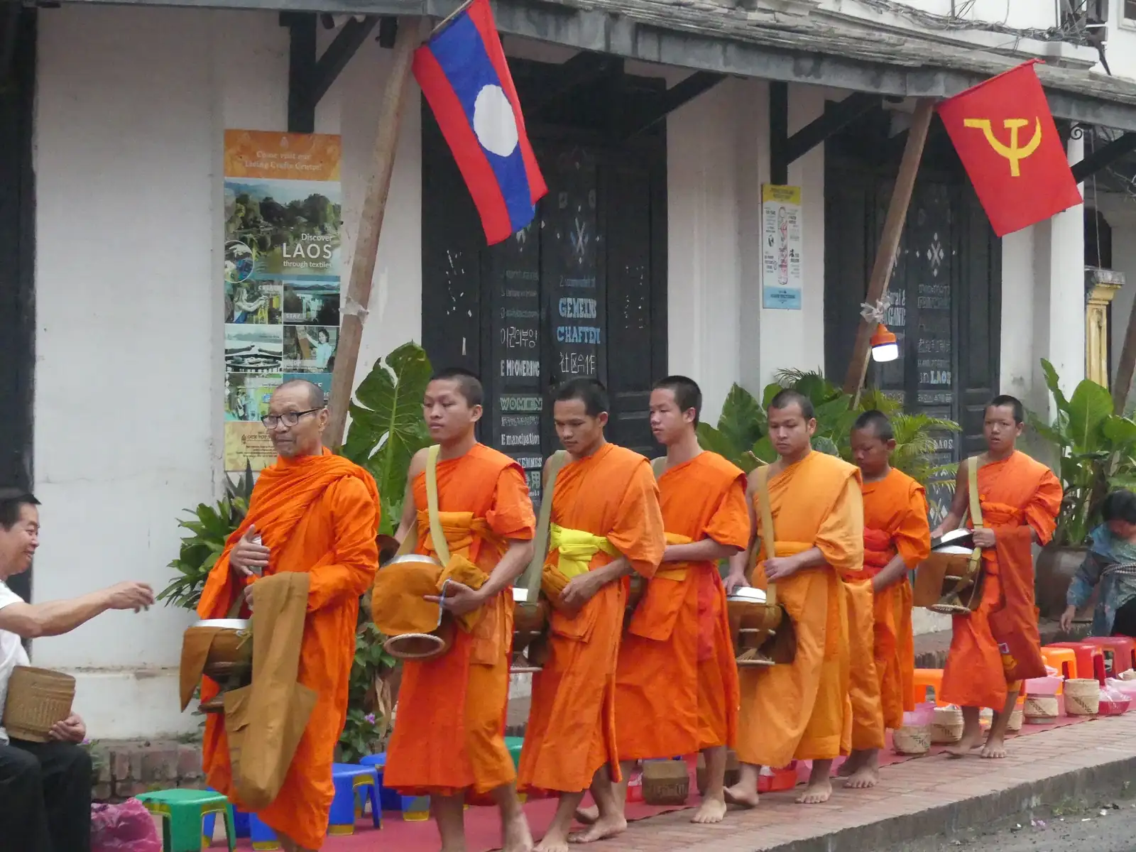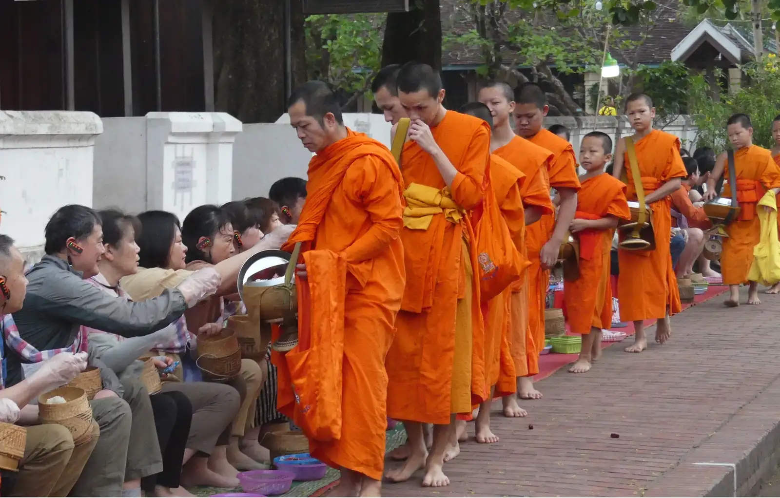 El Tak Vat, ceremonia diaria en la madrugada, donde los monjes reparten limosnas y reciben limonas de los ciudadanos.