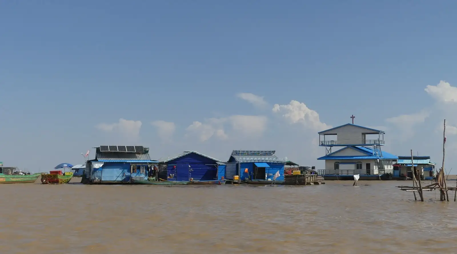 Casas de un pueblo lacustre en el Mekong