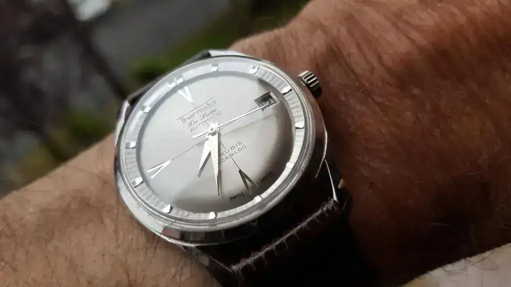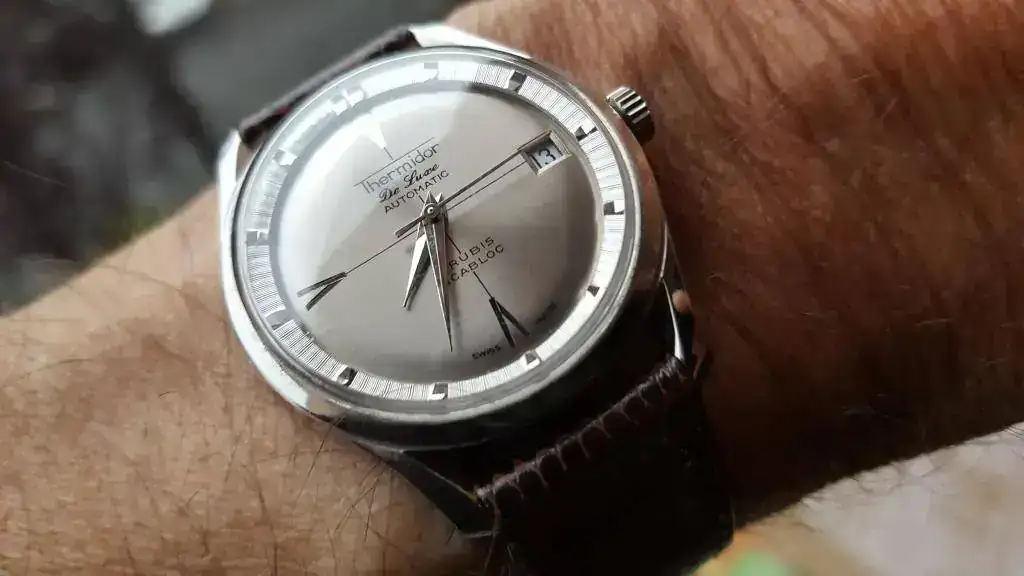 Un Jaeger con segundero central de tamaño contenido y correa ¨in house"