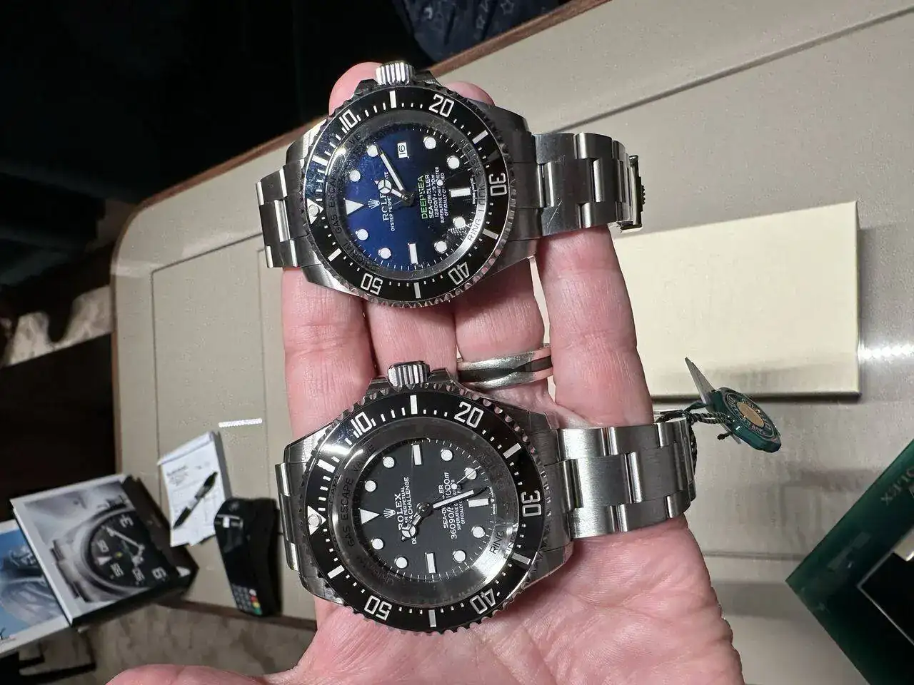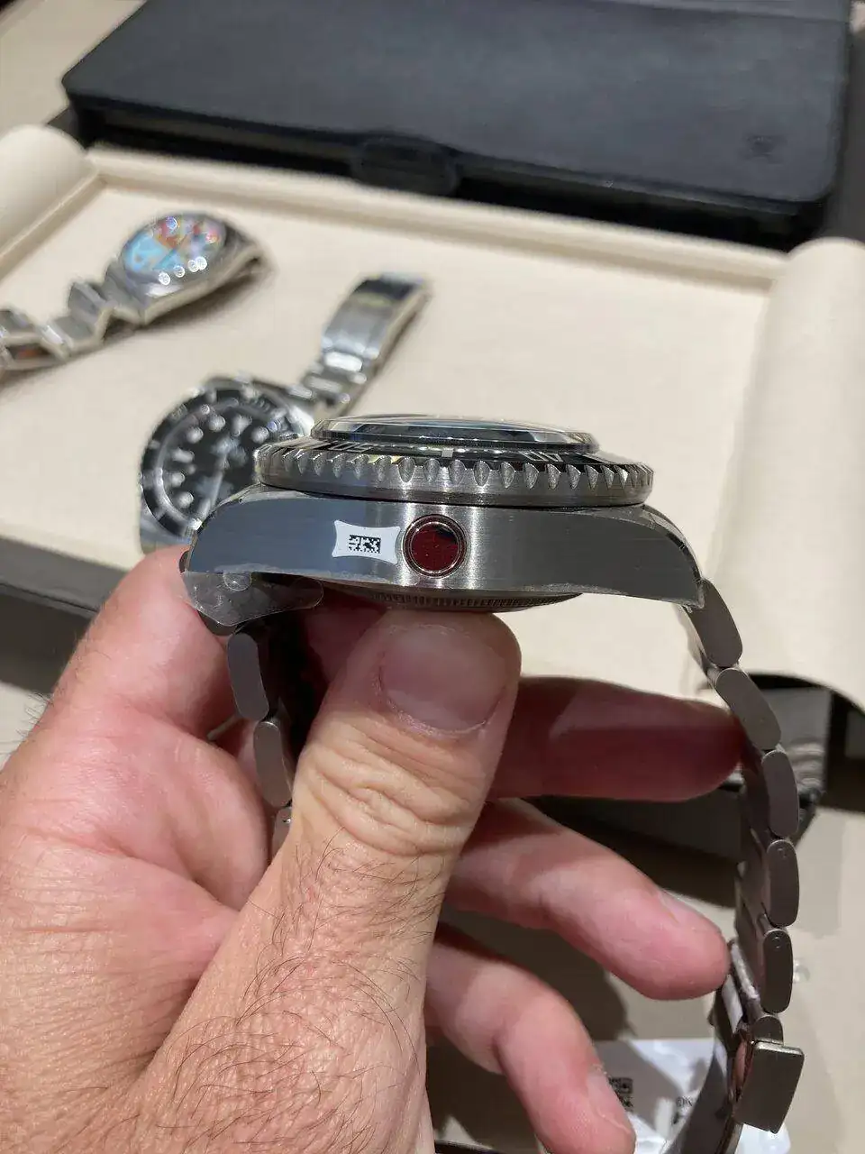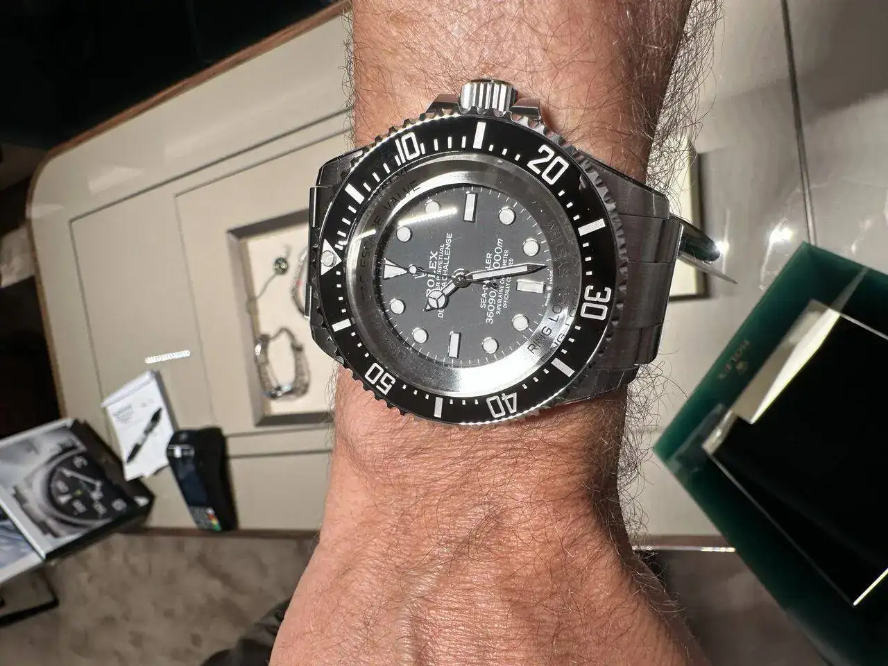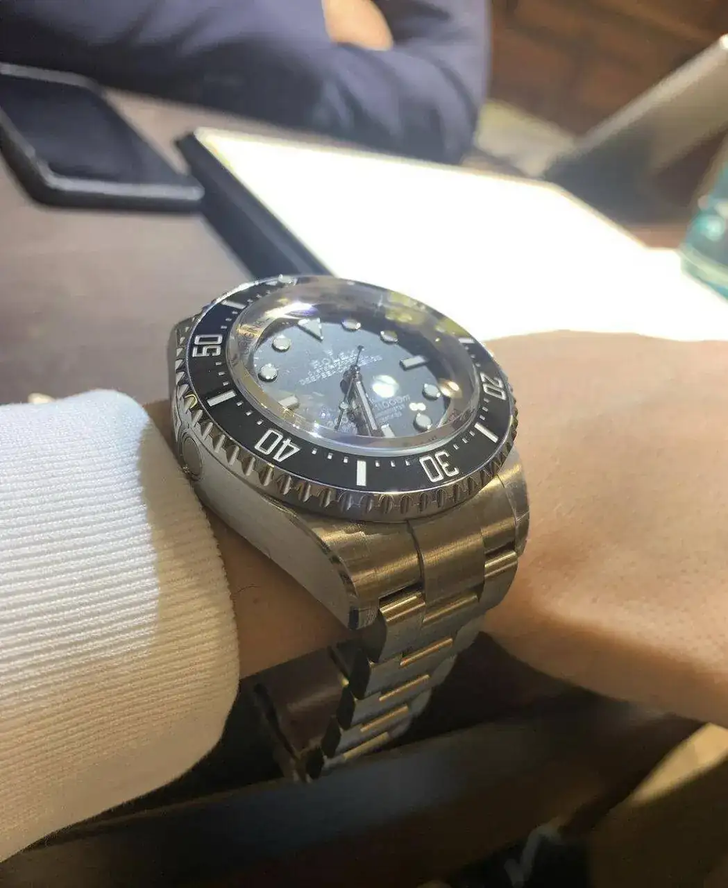 No se ve tan grande como el Deepsea Challenge que se supone que es 50 mm. desde luego no es la mejor posicion la foto que tomé del Rolex pero os aseguro que se veía enorme, mucho mas grande que este
