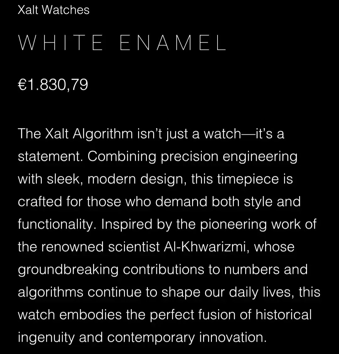 The Xalt Algorithm isn’t just a watch—it’s a statement. Combining precision engineering with sleek, modern design, this timepiece is crafted for those who demand both style and functionality. Inspired by the pioneering work of the renowned scientist Al-Khwarizmi, whose groundbreaking...