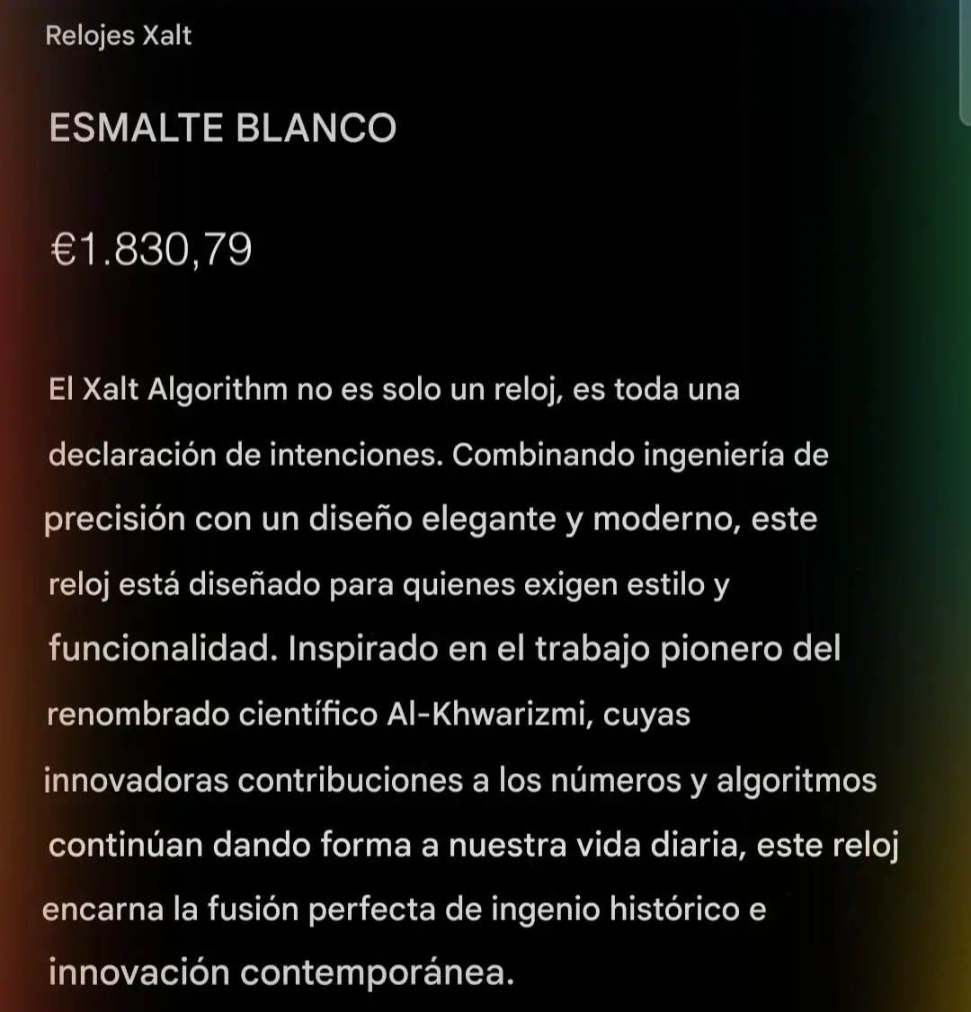 Vaya sarta de estupideces una tras otra. Encima el número 10 del reloj es romano no arábigo, por lo que la bobada de al khwarizmi cobra menos sentido si cabe