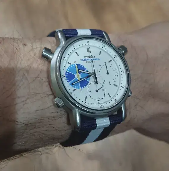 Lo he comprado de segunda mano pero como veis está como nuevo, tiene algún pelillo en el bisel. La NATO la tenía por ahí y le da un toque reloj de dotación militar que me mola. El brazalete si que era una porquería 😆