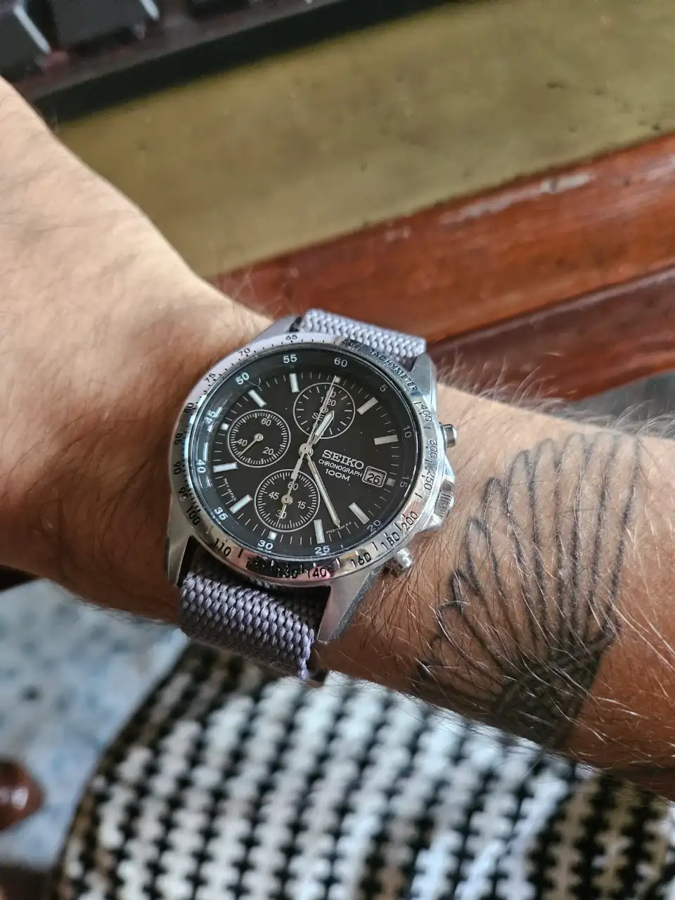 Que bonito crono compañero, yo a un Seiko de cuarzo con cristal mineral, no le diria que es una "mierda", todo lo contrario me parece un cuarzo muy bonito y con esa nato que le has calzado lo veo perfecto y por el precio , pues mas que mejjor.