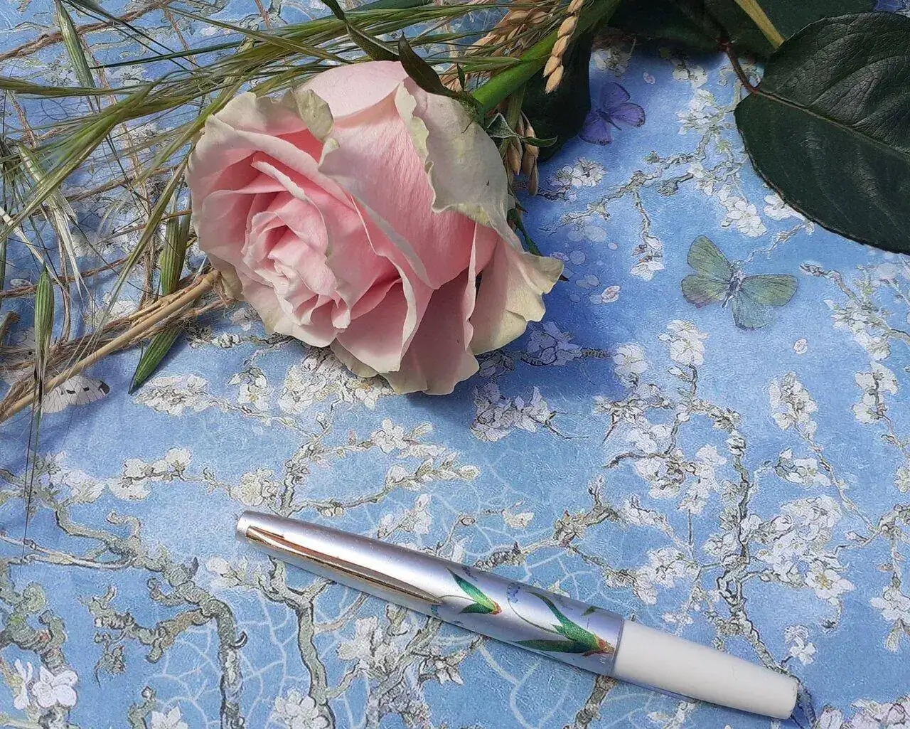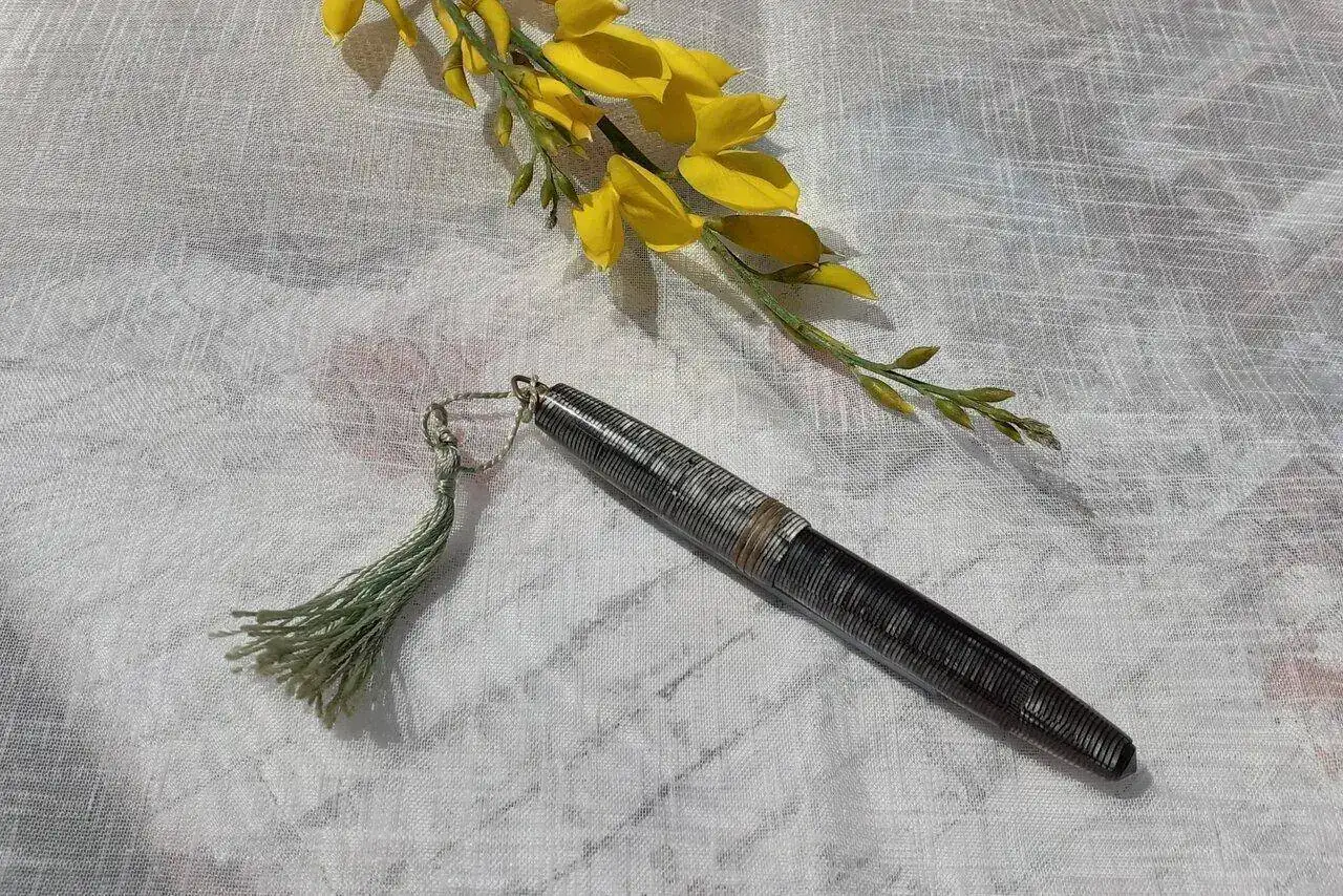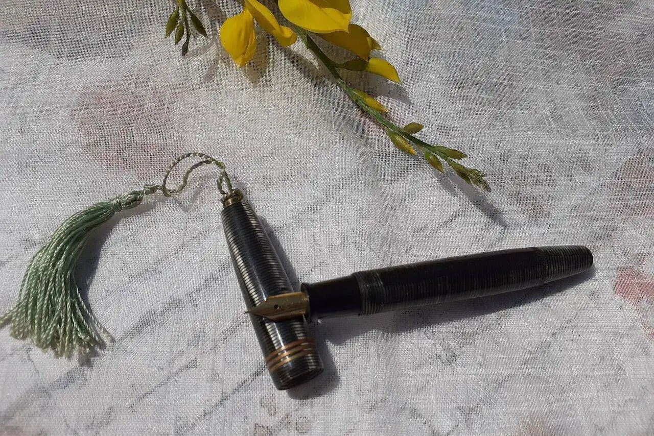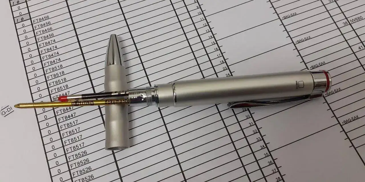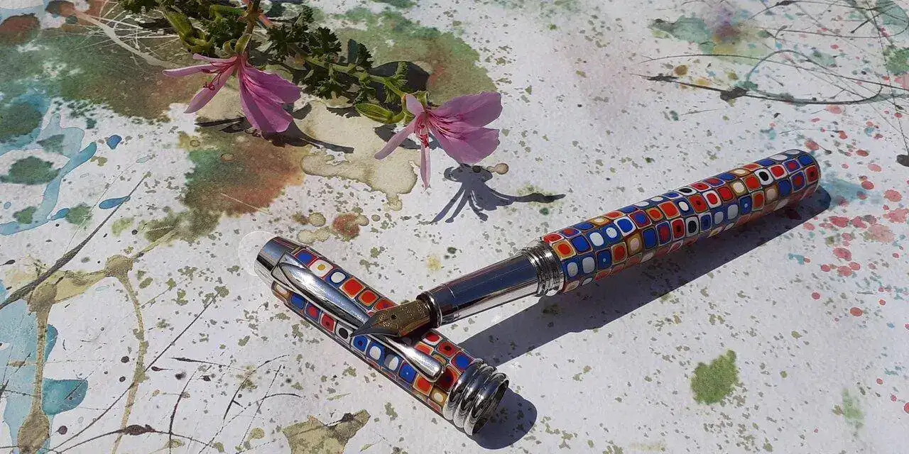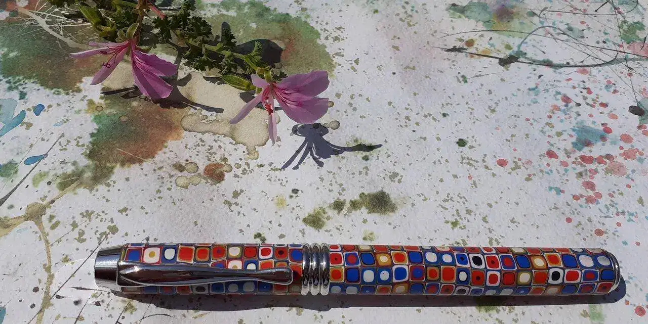 Es una Dayacom, una pluma china que compró en una feria de artesanos en un viaje a México y en un puesto reacondicionaban las plumas a petición del cliente. Gabriela pidió que fuera un polímero colorido y con motivos geométricos y se la hicieron tal cual.