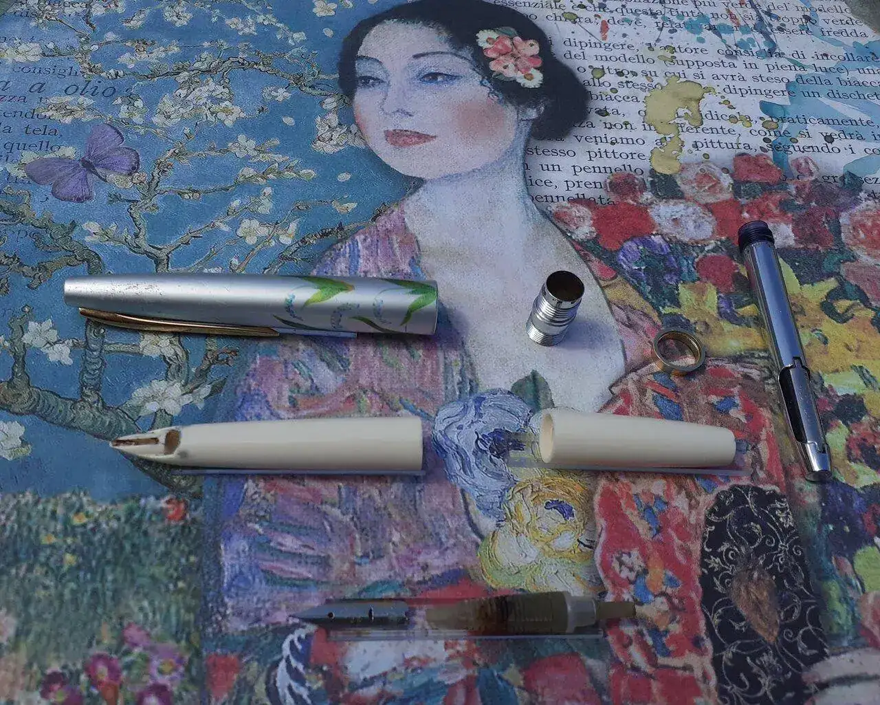 Pregunté a Joseph si iría a la feria y me respodió que sí. Así pues, lo primero que hice fue buscar su mesa y no estaba. Más tarde, cuando vino de visita, me dijo que sí venía a la feria pero que por horarios de su trabajo no podía poner mesa todo el día. Me comentó que sigue reparando plumas y que si tengo alguna para arreglar que se la deje en Viena18, la tienda que casi todos los aficionados visitamos cuando vamos a la ciudad. Yo llevaba encima una que compré en un PS de Madrid hace años y que nunca he utilizado. Estoy haciendo limpieza de las plumas que no uso o no quiero y antes de ponerlas a la venta quiero asegurarme que están en buen estado. Por este motivo quería que Joseph se la mirara y así lo hizo. Es una Dacis Montegrappa, una pluma de señorita, me dijo la vendedora italiana.