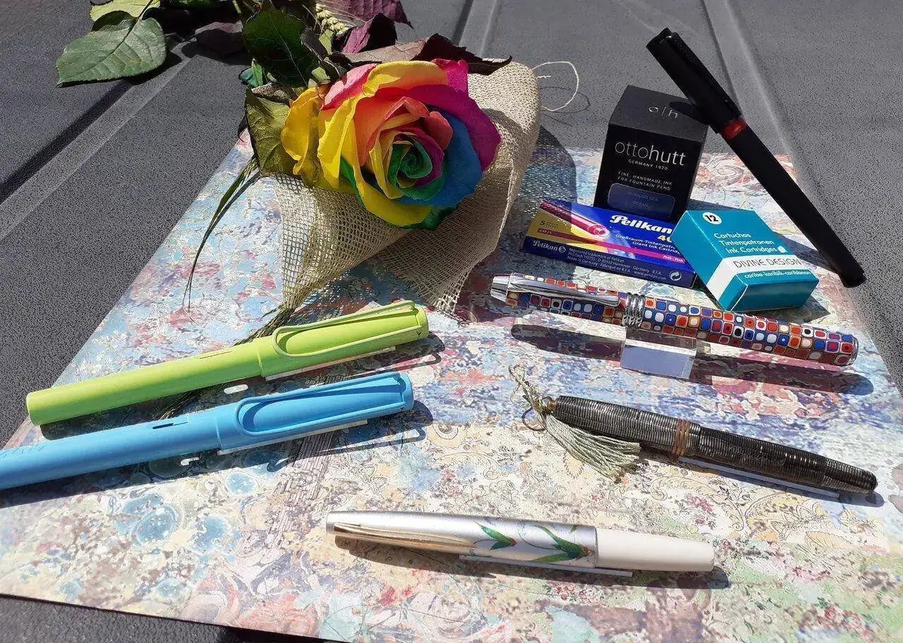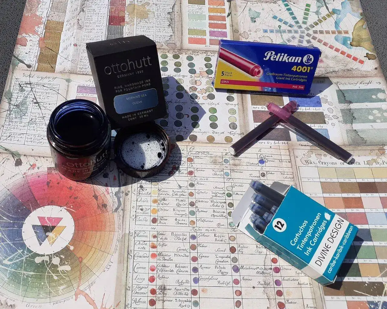 Es la única foto que saqué ese día porqué me llamaron la atención los tinteros y las muestras de colores que tenía en la mesa e hice una foto para enseñarle a