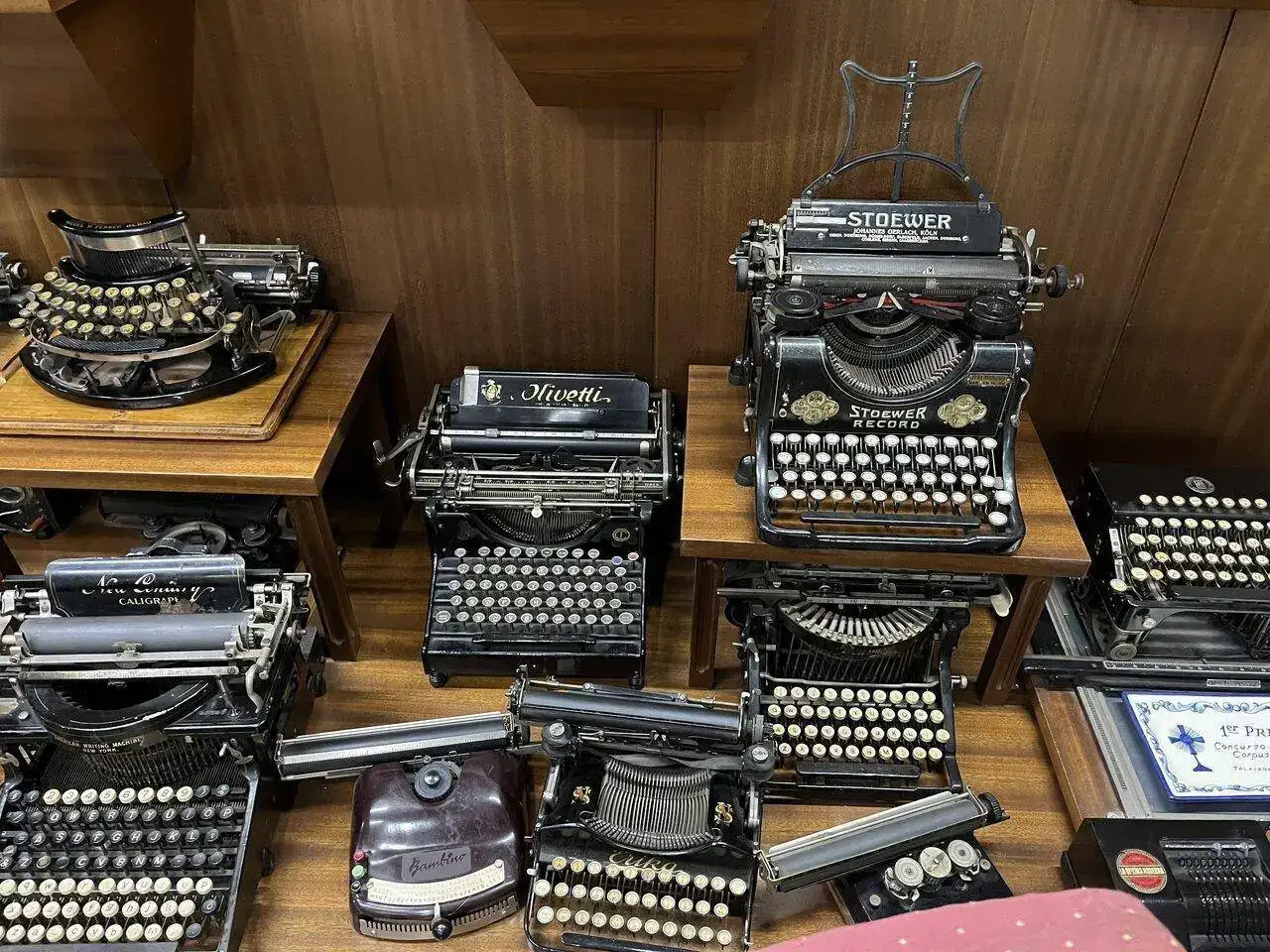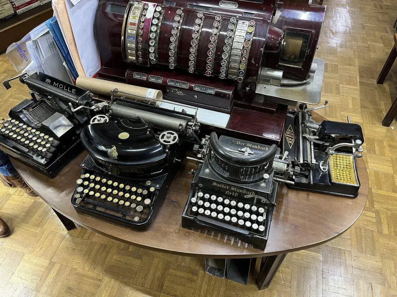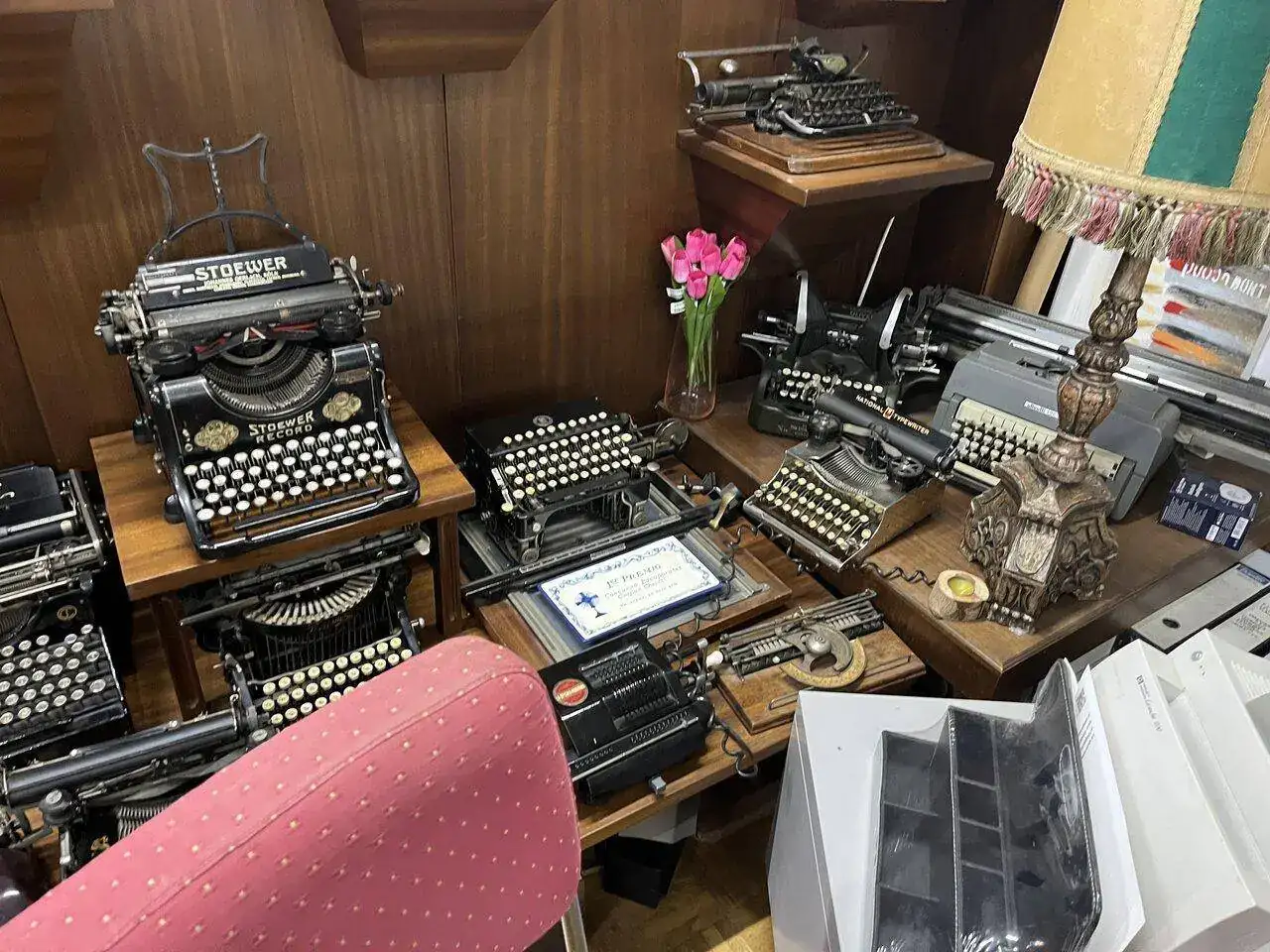 Como cada año, el pasado 3 de enero a última hora de la tarde me acerqué a Talavera (estaba pasando unos días en el pueblo) a comprar libros, y aproveché para visitar Loave, la única papelería que ha sobrevivido desde mi infancia y la única también cuyo surtido de plumas va más allá de las típicas Parker y Waterman modernas. No iba a hacer gasto, que los libros ya los había comprado en otra parte aunque al final algo cayó, sino tan solamente a mirar las Pelikan, las Omas y algún cuaderno. Cuando me disponía a marchar, una de las encargadas me invitó a subir a la planta de arriba, hasta ayer desconocía que esa planta estuviera habilitada para los clientes, con la promesa de que merecía la pena, y vas si la mereció: una dignísima colección de máquinas de escribir antiguas, hoy todas lo son, desde la Olympia con que estudié mecanografía allá por los ochenta hasta esa Underwood que añado siempre en el apéndice de fotos a mis apuntes de la generación del 27. Pedí permiso al dueño de Loave para compartir en este foro las fotos que saqué, y aquí las tenéis. Soy mal fotógrafo y tampoco había espacio para buscar el mejor encuadre, pero creo que merecen la pena. Un saludo y feliz año. Van las fotos: