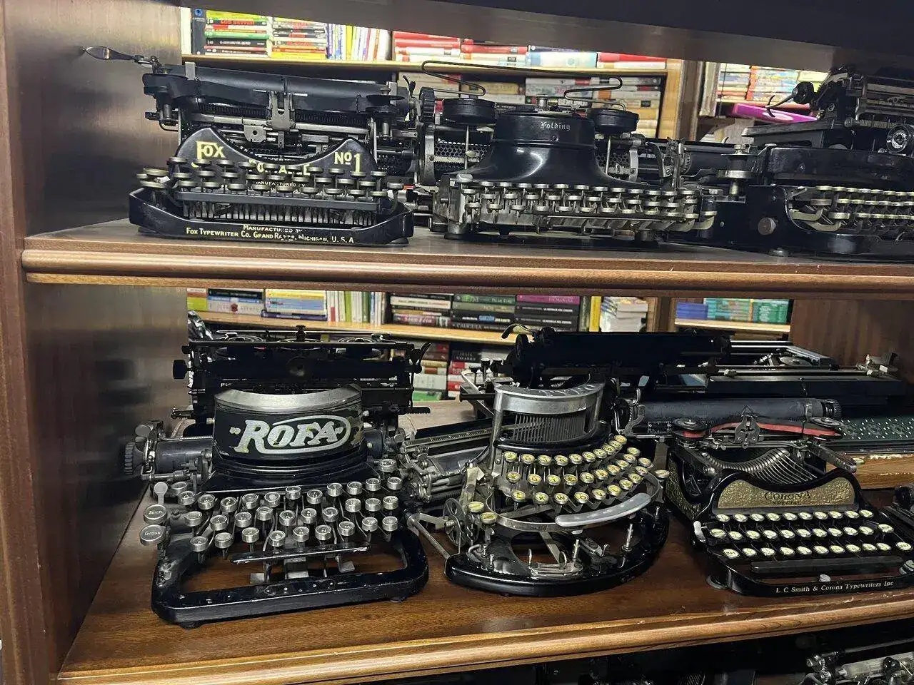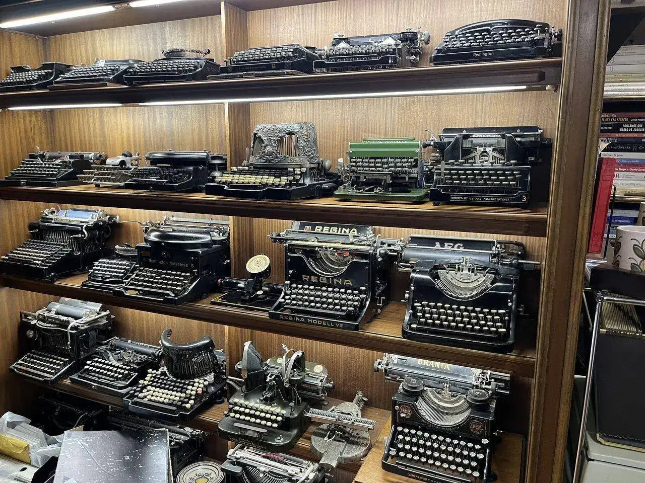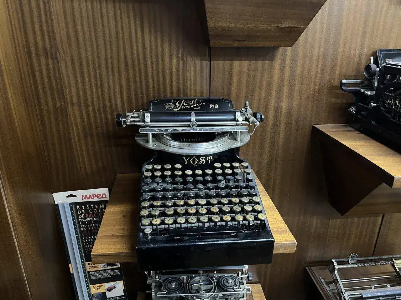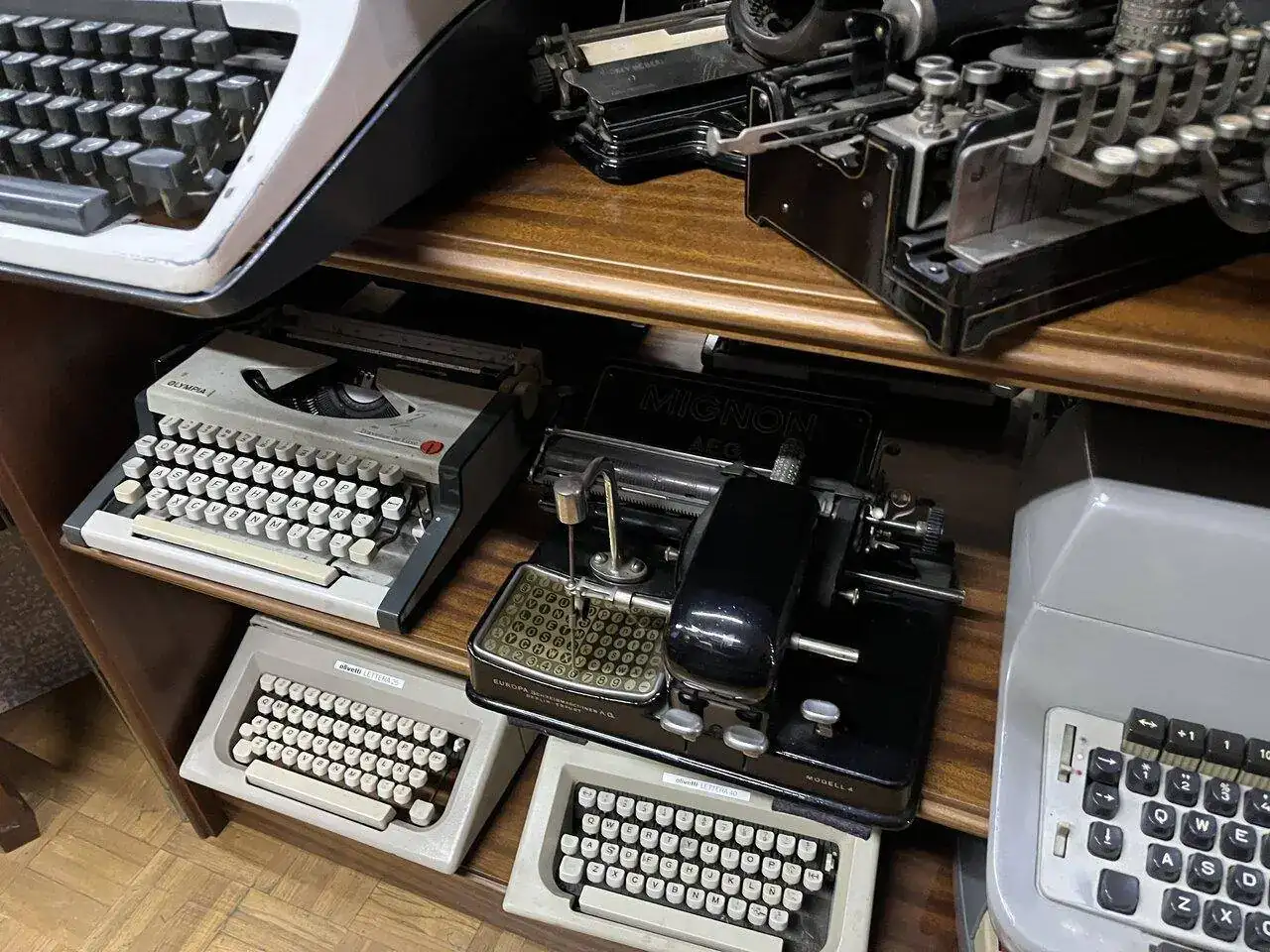 Como cada año, el pasado 3 de enero a última hora de la tarde me acerqué a Talavera (estaba pasando unos días en el pueblo) a comprar libros, y aproveché para visitar Loave, la única papelería que ha sobrevivido desde mi infancia y la única también cuyo surtido de plumas va más allá de las típicas Parker y Waterman modernas. No iba a hacer gasto, que los libros ya los había comprado en otra parte aunque al final algo cayó, sino tan solamente a mirar las Pelikan, las Omas y algún cuaderno. Cuando me disponía a marchar, una de las encargadas me invitó a subir a la planta de arriba, hasta ayer desconocía que esa planta estuviera habilitada para los clientes, con la promesa de que merecía la pena, y vas si la mereció: una dignísima colección de máquinas de escribir antiguas, hoy todas lo son, desde la Olympia con que estudié mecanografía allá por los ochenta hasta esa Underwood que añado siempre en el apéndice de fotos a mis apuntes de la generación del 27. Pedí permiso al dueño de Loave para compartir en este foro las fotos que saqué, y aquí las tenéis. Soy mal fotógrafo y tampoco había espacio para buscar el mejor encuadre, pero creo que merecen la pena. Un saludo y feliz año. Van las fotos: