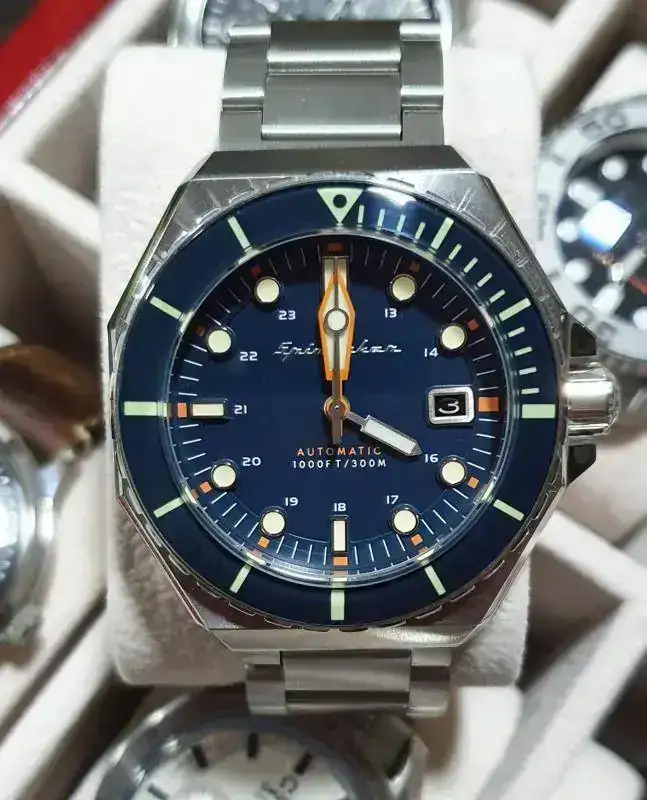 Hola, hoy abro la caja de los diver, para ponerme uno y me doy cuenta que mi Spinnaker está parado, lo cual es normal porque ya hace que no me lo pongo, pero parado así, no deja de ser curioso. Quizás lo veáis una chorrada pero me ha hecho gracia y por eso lo comparto. Le he hecho unas fotos en diferentes sitios de la caja como veis, moviendolo lo menos posible para que no eche a andar, pero al final ha comenzado a dar pasitos. Este es el resultado. La cosa es que me he quedado embobado un buen rato. Saludos...!!!