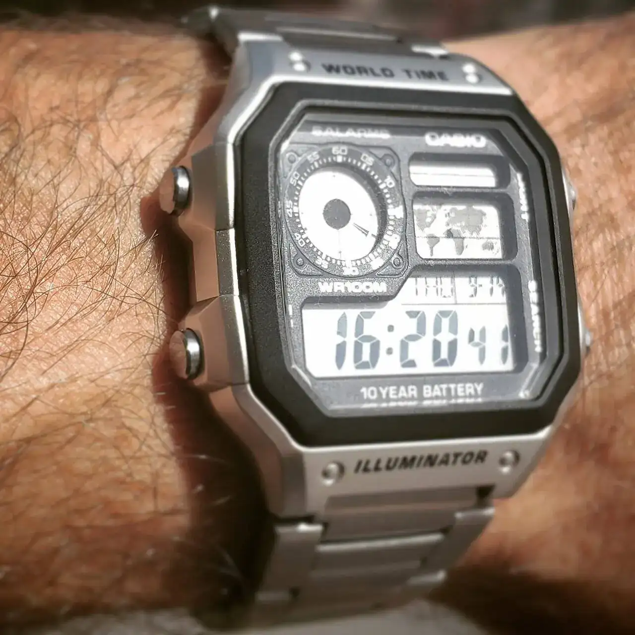 Por último, mi última adquisición el Casio a1100d. PROS: es precioso, tanto caja como el brazalete son 100% metálicos y la sensación de calidad respecto a los dos anteriores es abismal, y los reflejos del brazalete con la luz le dan un toque especial. es el mas fino de los tres y hace que cabecee muy poco y que sea realmente cómodo en la muñeca. es el mas polivalente de todos y no desentonaría ni con traje, en este sentido compite con el PRX digital. Cons: todo lo demás son contras por desgracia. Casio podría haber hecho un reloj redondo pero se ha quedado a medio camino. El módulo es de los mas básicos, con las funciones justas (mas básico que el f91w), no se muestra la fecha en pantalla (hay que apretar un botón) ya que es muy pequeña y solo dispone de alarma, fecha y crono. Es WR pero solo a las salpicaduras, nada de ducharse o nadar con él. La pila tiene duración de 3 años y que decir del precio, unos 110€ en oferta...