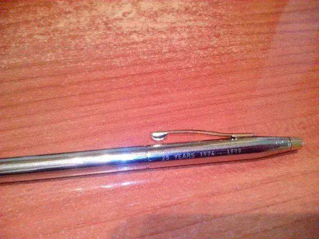 Hace como un par de años que tengo un bolígrafo Cross Century Classic que pillé por Ebay muy barato. El caso es que tengo un par de ellos más de este modelo (nuevos) y, como me gustaba, me pillé éste que os muestro en la foto que era barato por estar "usado" y tener un grabado: