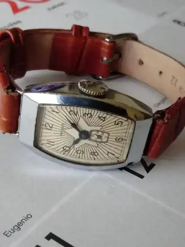 Entiendo también que fue producido en el cuarto trimestre de 1951, pero lo que ya no soy capaz ni siquiera de aventurar es de qué fábrica salió; ojalá me podáis ayudar con eso.Y como remate, la bonita y artesanal correa que traía puesta, que me parece que combina estupendamente y realza más aún los singulares encantos de esta Estrella roja. Y es que mi amigo, además de un sol, es un artista