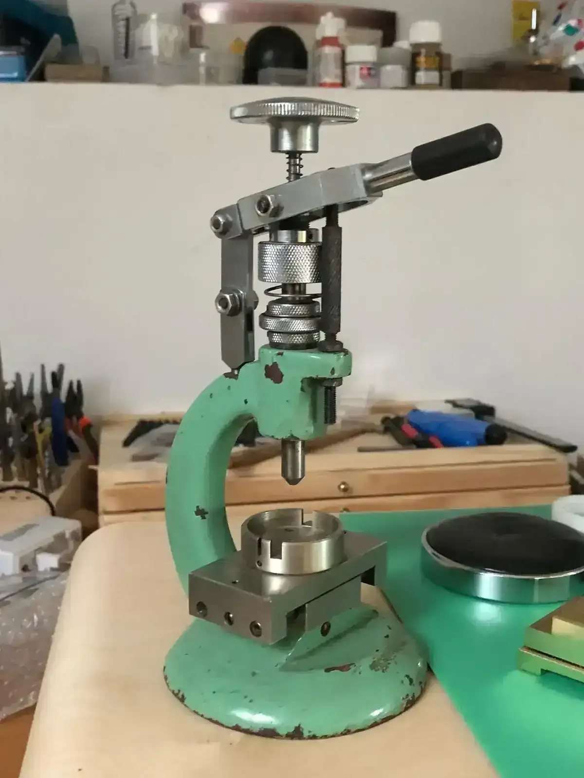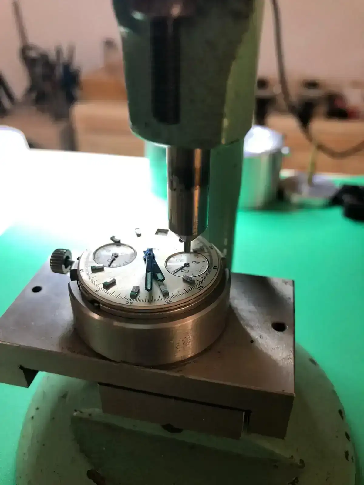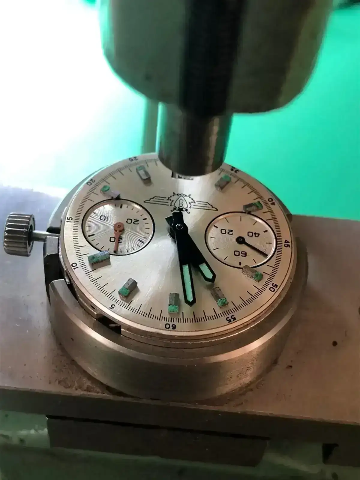 Quienes me conocen saben que el núcleo de mi colección se centra en los cronógrafos con movimientos Poljot 3017, 3133 y 31659, así que cuando pude contactar con un antiguo trabajador de la fábrica Poljot en Moscú, y encontrar no una, sino dos prensas para agujas originales de dicha fábrica, diseñadas específicamente para agujas del movimiento 3133 y sus variantes, me sentí como un niño en Navidad. Sin pensarlo me hice con una de ellas, y avisé a un buen amigo inglés, también obseso de este movimiento, para que se hiciese con la otra... ¡Ayuda y te ayudaré!