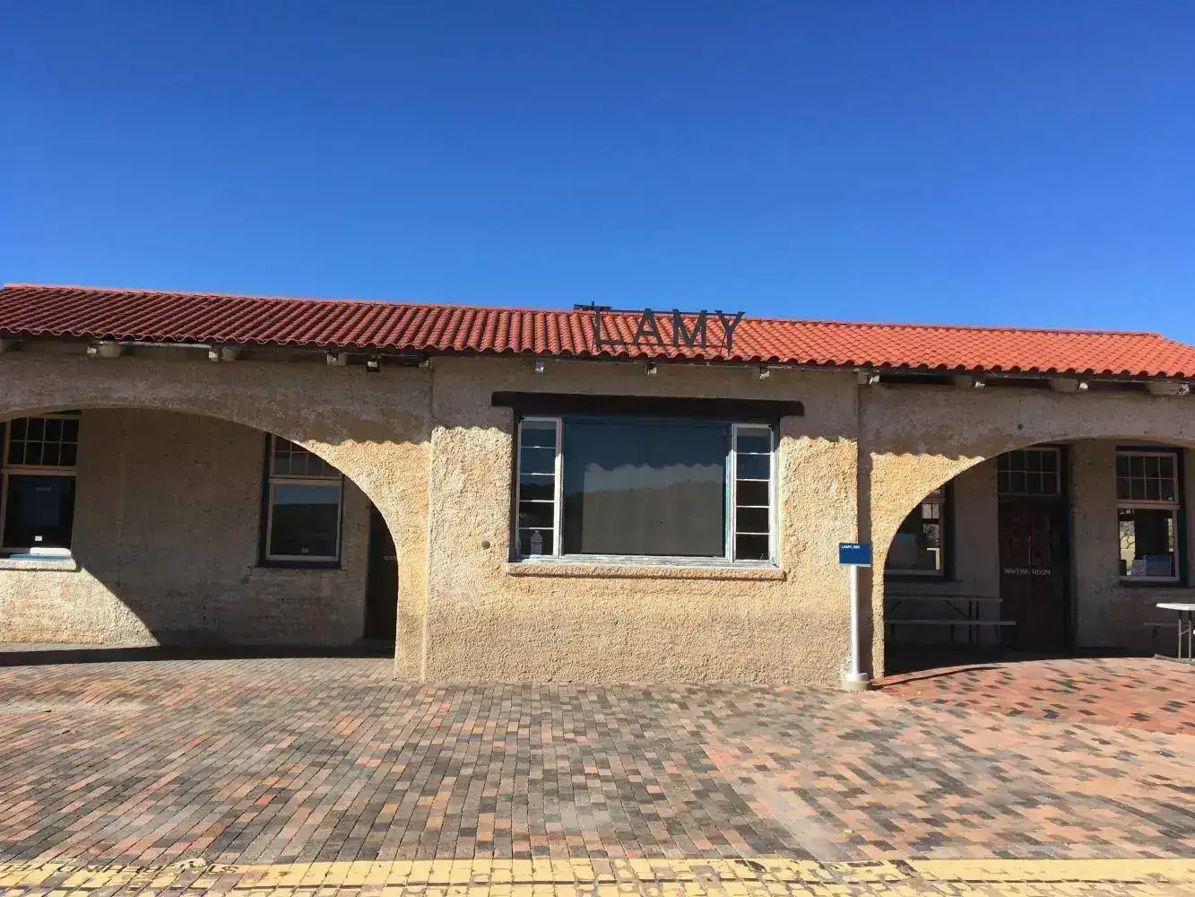 Lamy es una estación de tren que conoció épocas mejores: se hizo mundialmente famosa porque durante la segunda guerra mundial los científicos que iban a construir la bomba atómica llegaban a esta estación de tren, se los cargaba en camiones y se los bajaba en las oficinas secretas de Oppenheimer en la ciudad de Santa Fe, que queda a unos 25 km de Lamy. Fue en estas oficinas que se planificó, se pensó y se diagramó la bomba; o las bombas, mejor dicho. La construcción de las mismas se hizo en Los Alamos, como ya todos ustedes saben.